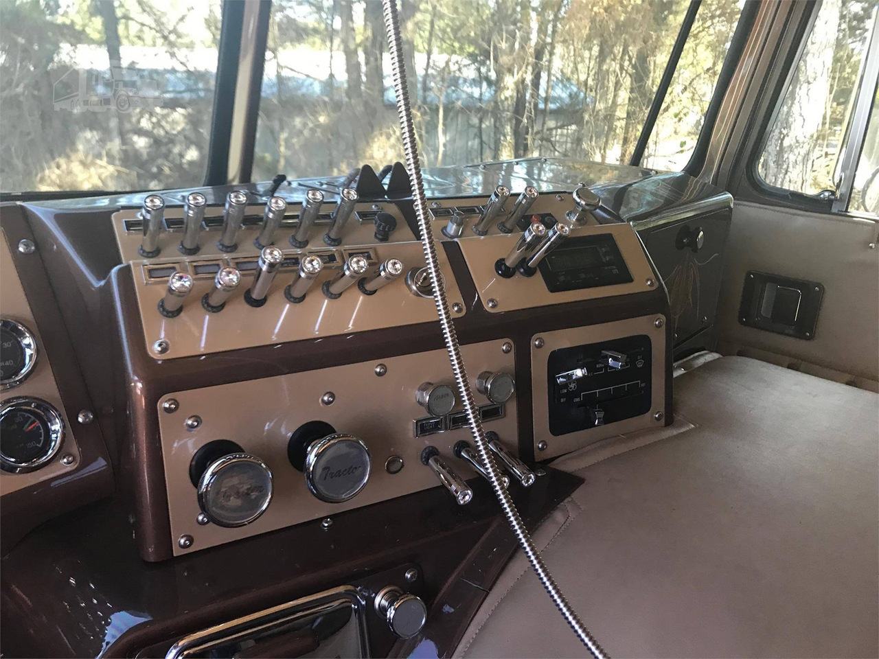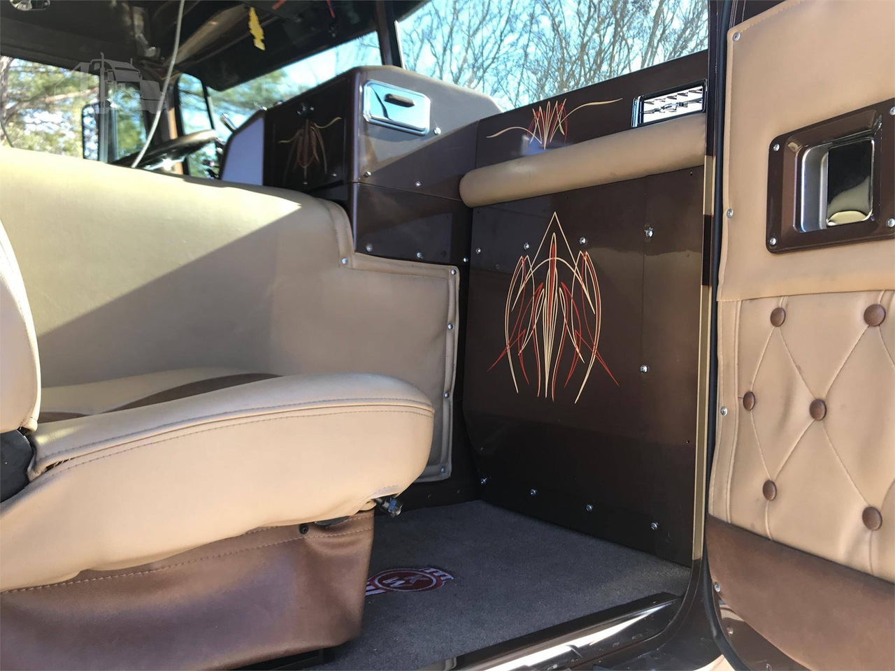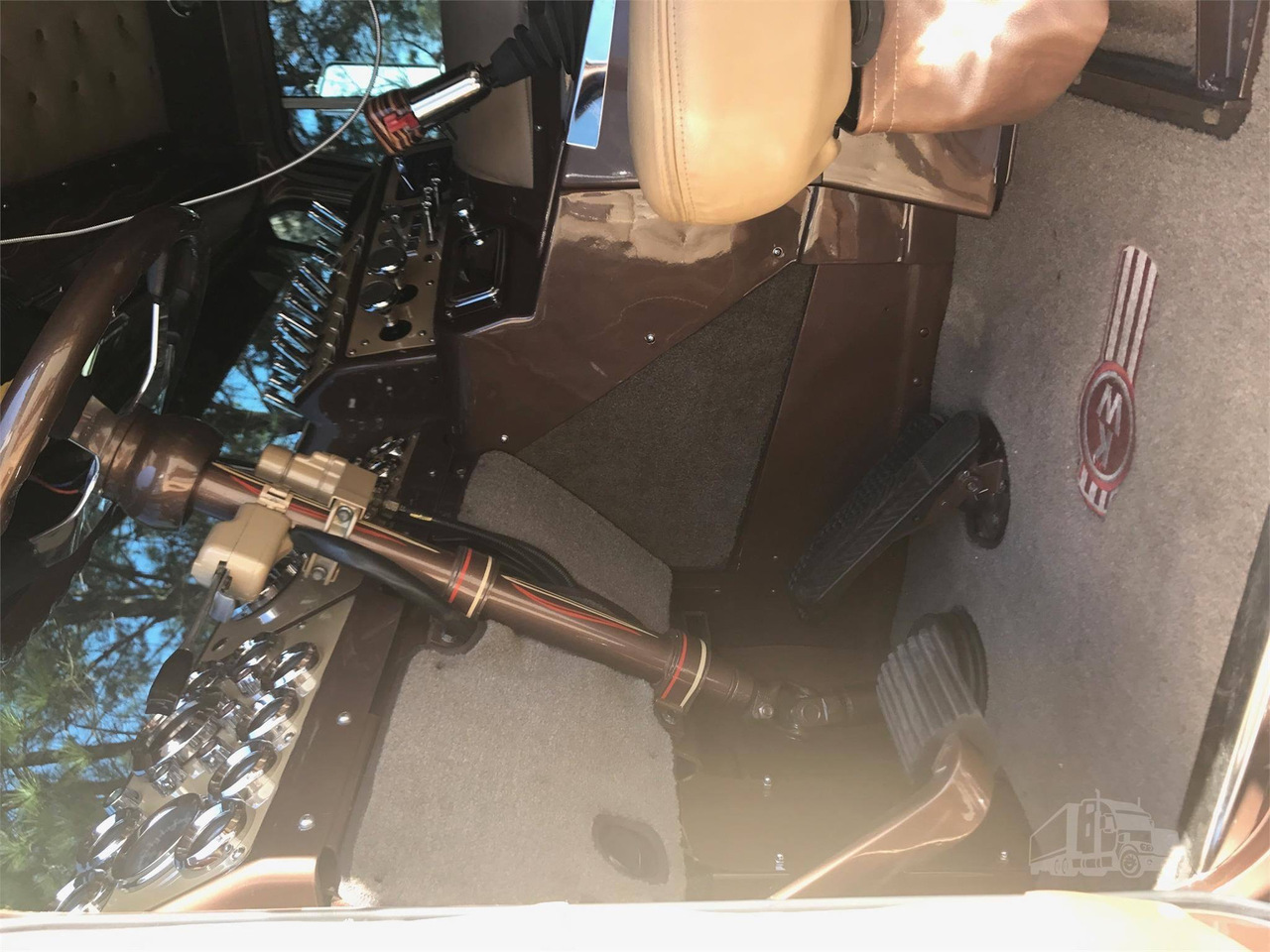 На полу - коврики с логотипом Kenworth. Посмотрите, даже с этого ракурса всё выглядит очень ухоженно.