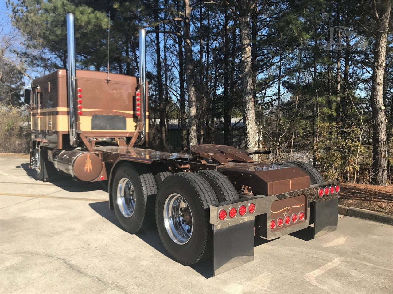 Спальный отсек также был удлинен примерно вдвое. Место штатных выхлопных труб заняли две высоченные хромированные "колонны", которые смотрятся просто потрясающе. Топливный бак и задние крылья (нестандартные, кстати) также окрасили в общий с кабиной цвет.