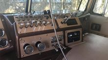 На передней панели расположилось огромное количество тумблеров и выключателей. И практически все - хромированные. 4-х спицевый руль также нестандартный.