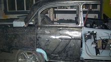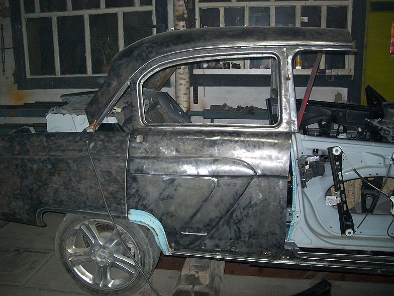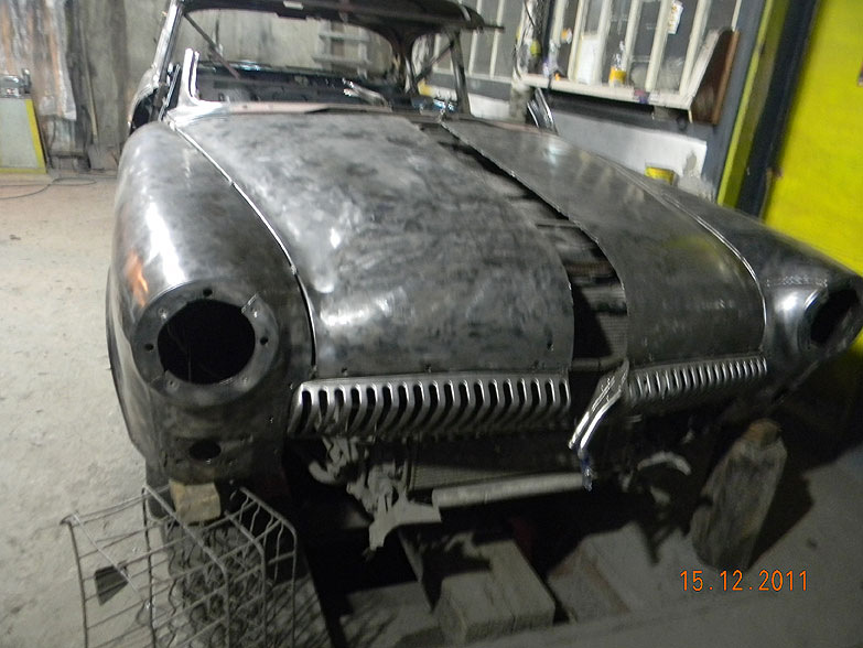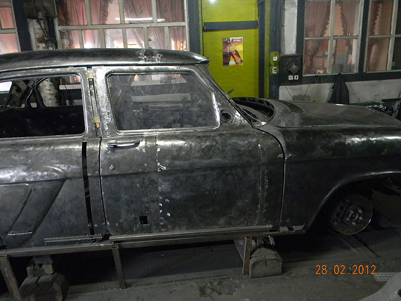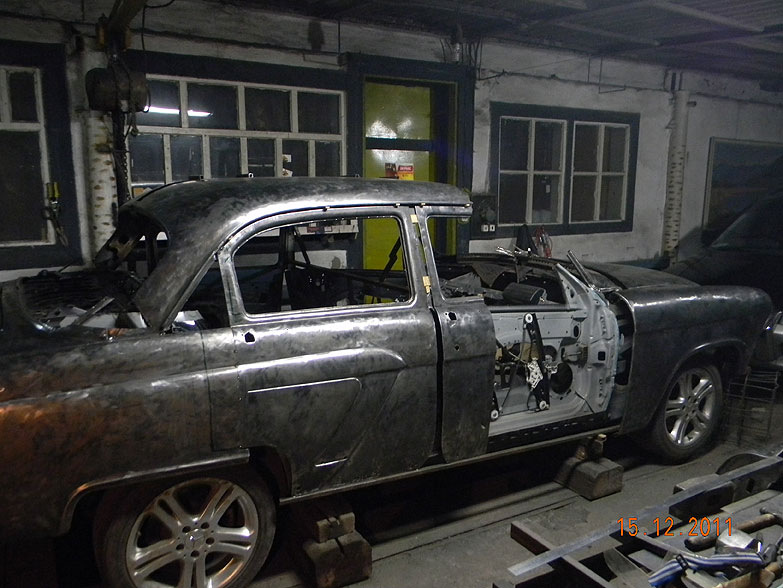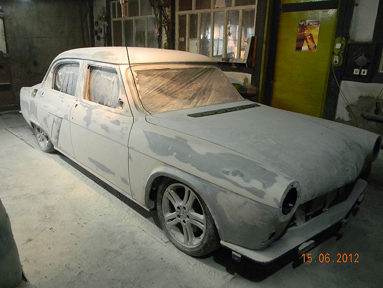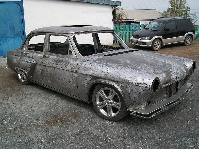 Постепенно автомобиль стал обрастать кузовными деталями от ГАЗ-21 «Волга». Шасси оказалось шире и длиннее кузова советского автомобиля, поэтому все детали разрезались пополам и растягивались примерно на 200-300 мм. Образовавшуюся щель закрывали, используя детали от кузова другой «Волги».