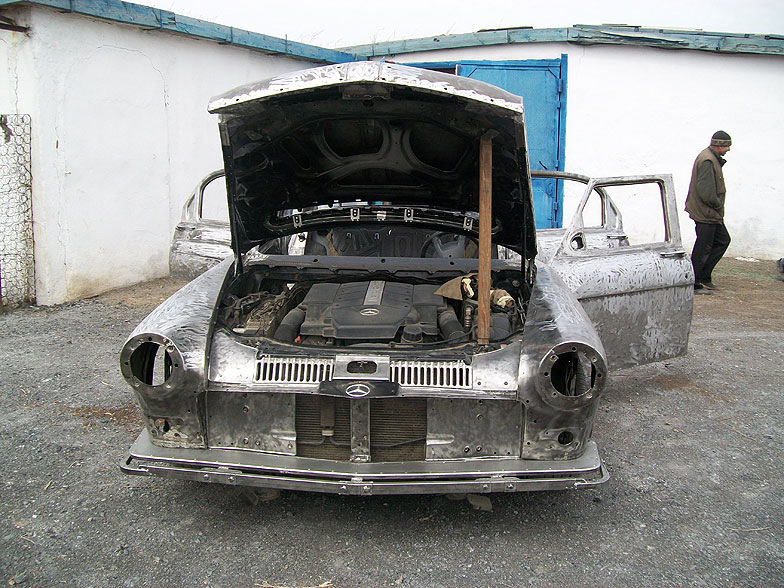 Проект был создан несколько лет назад тюнинг-мастерской Simco из Казахстана. Им понадобилось сразу три автомобиля ГАЗ-21 «Волга» и один Mercedes-Benz, чтобы реализовать задуманное.