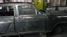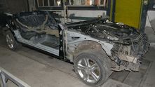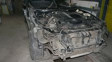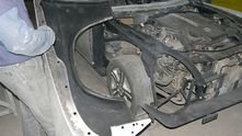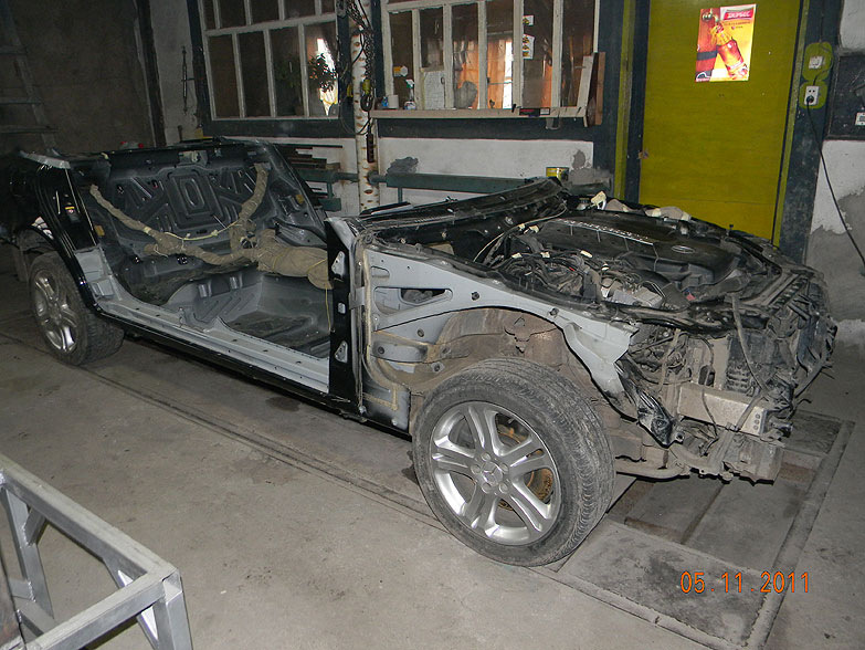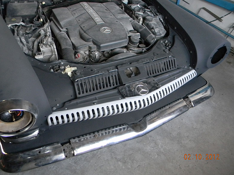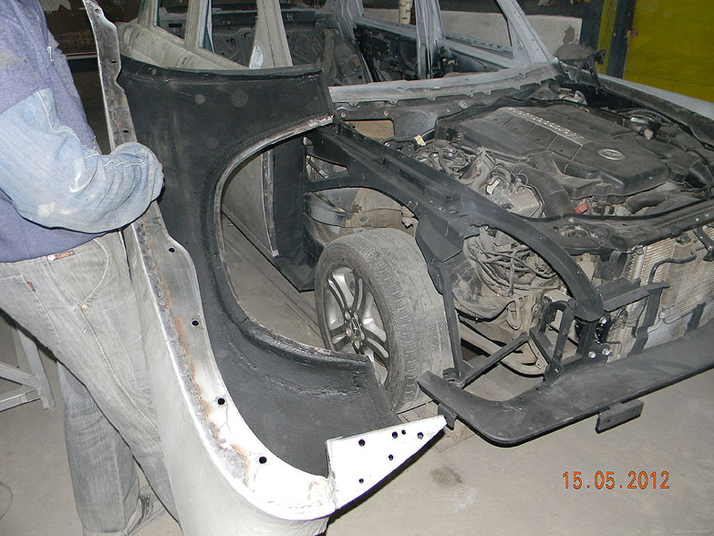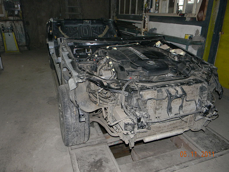 Первым делом донорский Mercedes-Benz полностью «раздели», сняв все возможные кузовные панели и срезав крышу. В результате осталось что-то похожее на шасси, способное двигаться автономно, но сильно нуждающееся в новом кузове.