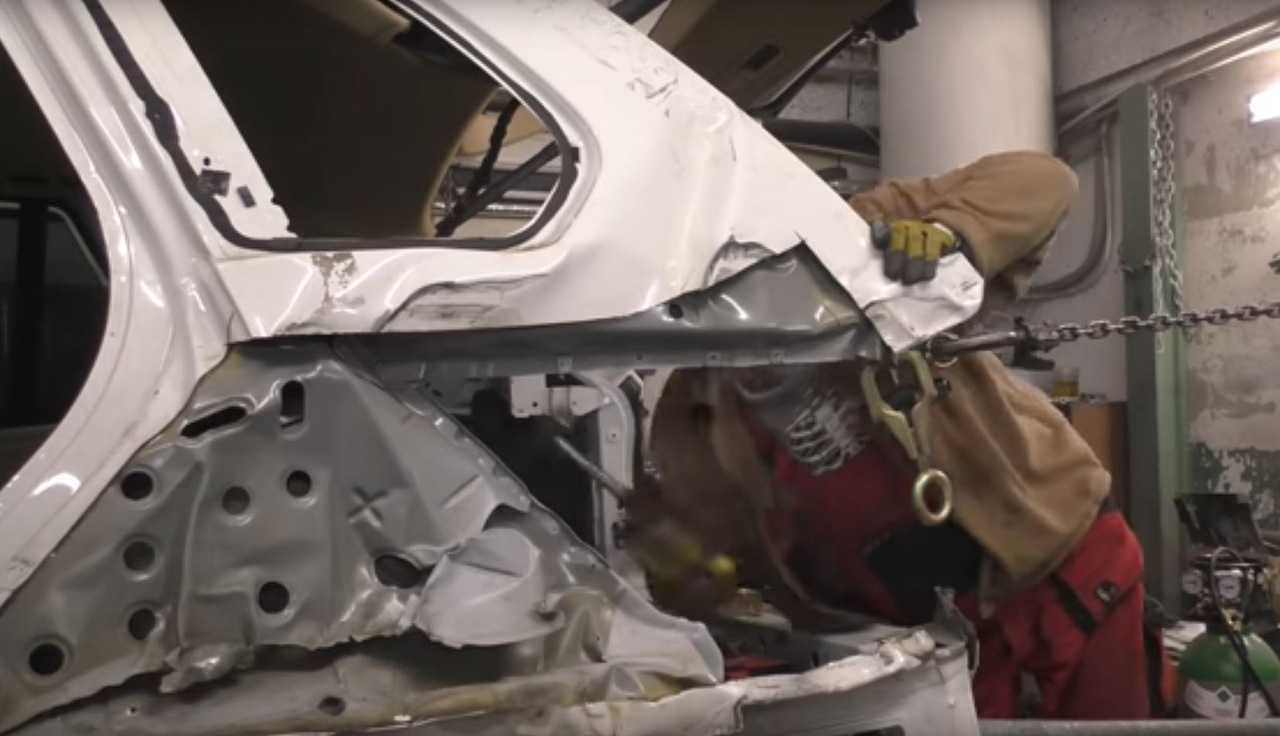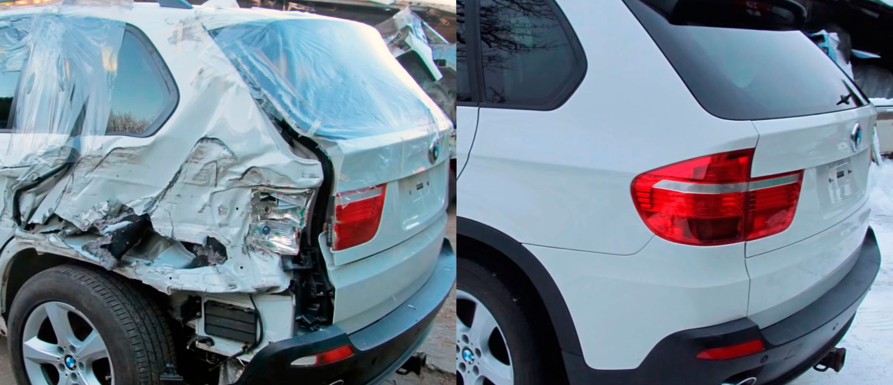 Большинство механиков побоялись бы связываться с подобными повреждениями силовой структуры автомобиля, но Артур Туссик настроен позитивно, ведь «это просто металл». Его инструменты также иногда довольно просты: молотки и сварка. Но то же самое нельзя сказать о его навыках. После сборки и сварки нескольких донорских деталей, механик полностью восстанавливает силовую структуру BMW X5 и может приступить к работе по замене внешних деталей.