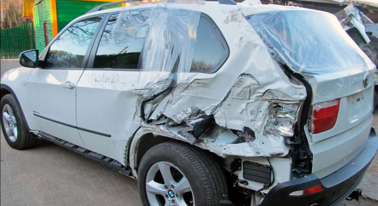 Особый стиль вождения дорогих кроссоверов BMW означает, что многие X5 попадают в аварии. В данном конкретном случае кто-то еще врезался в заднюю часть автомобиля, серьезно повредив заднее крыло, арку и часть багажника.