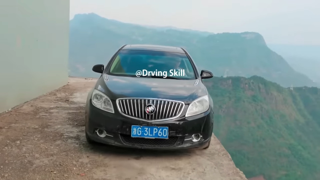 Водитель из Китая не только отлично чувствует габариты своего автомобиля, но и запросто свешивает одно из задних колёс над пропастью.