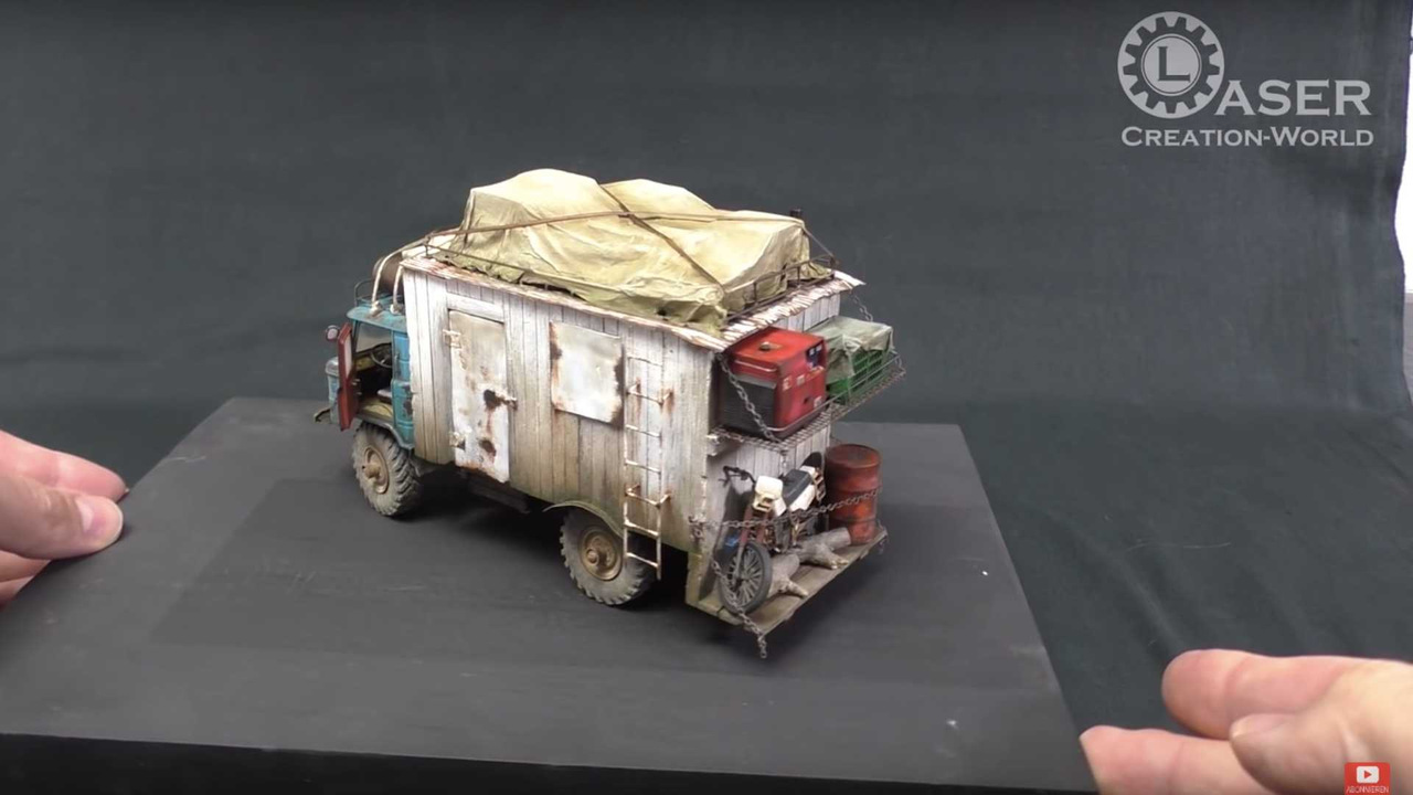 Причем это не просто какой-нибудь бортовой грузовик, а самодельный дом на колесах, созданный на базе какого-то старого фургона. К счастью, Laser Creation-World заснял весь процесс создания масштабной модели, поэтому в теории вы можете повторить это.