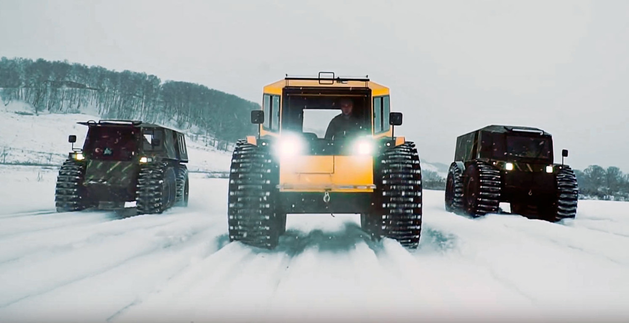 В дополнение к этому «Шатун NEO» получил измененную конструкцию главного шарнира ломающейся рамы и функцию подкачки шин выхлопными газами. Youtube-канал Review Machines провел сравнительный тест сразу трех вездеходов «Шатун», два из которых — новенькие NEO. Им приготовили очень суровые испытания, которые вы увидите в видеоролике.