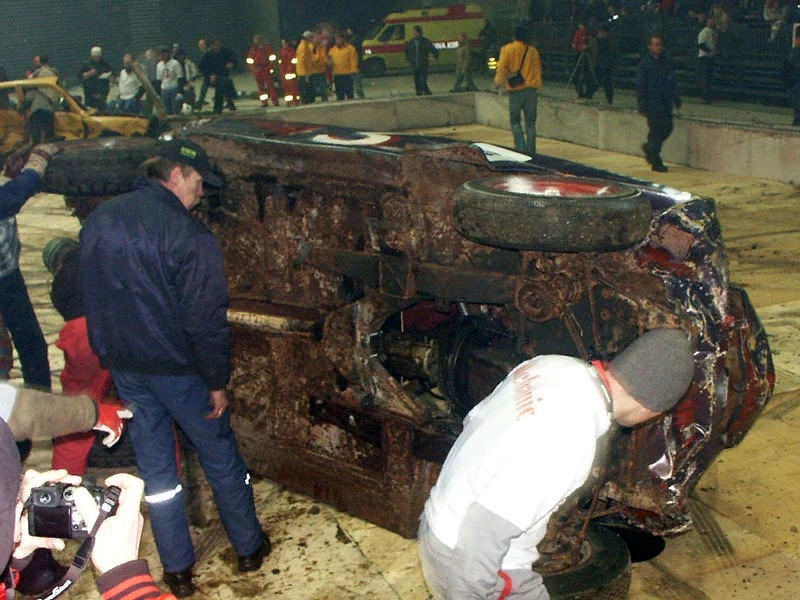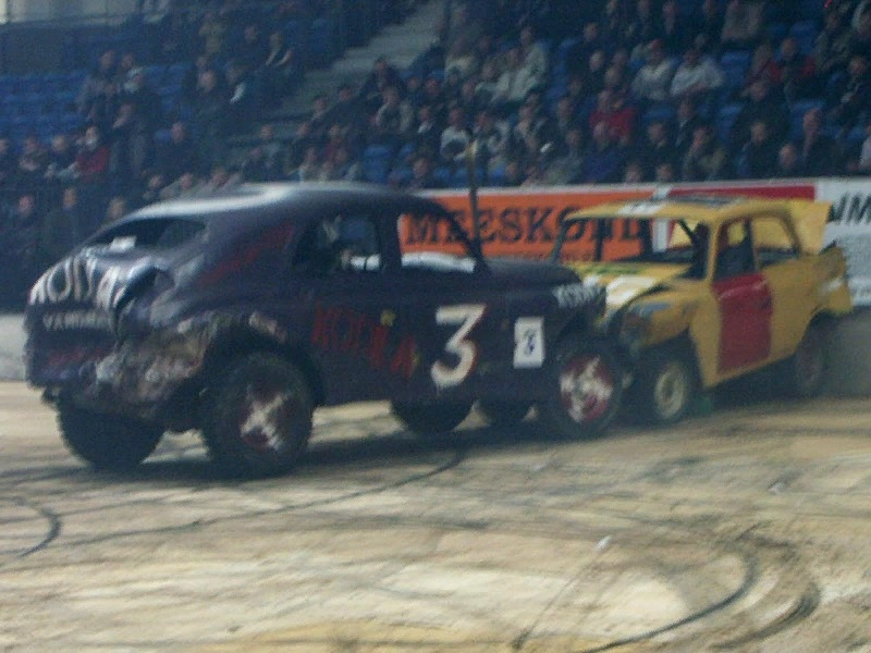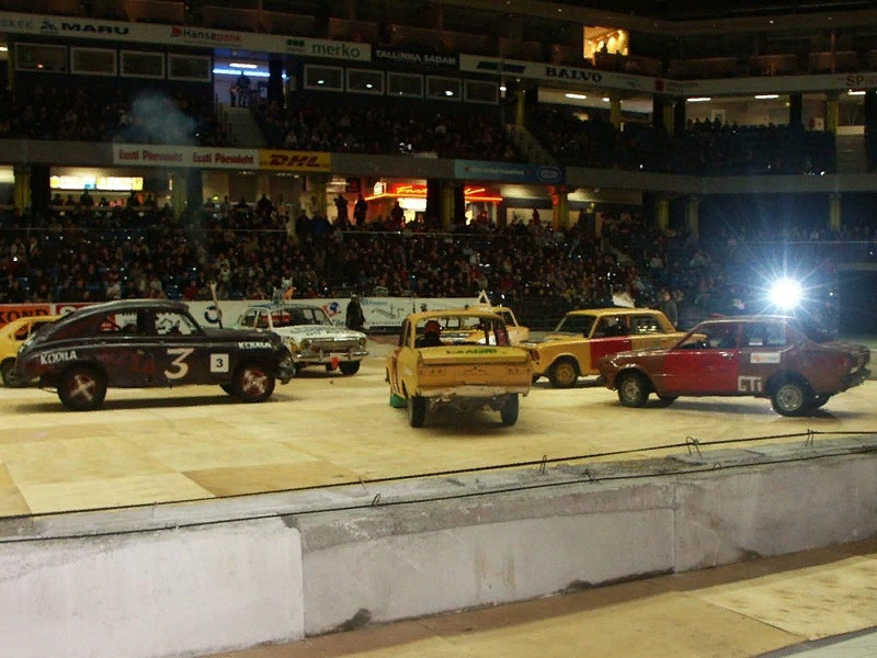 Эти фотографии сделаны в 2004 году во время одного из Romuralli в Эстонии. Шоу проходит на небольшом стадионе. Площадка действительно довольно компактная и для безопасности огорожена бетонными блоками.