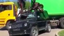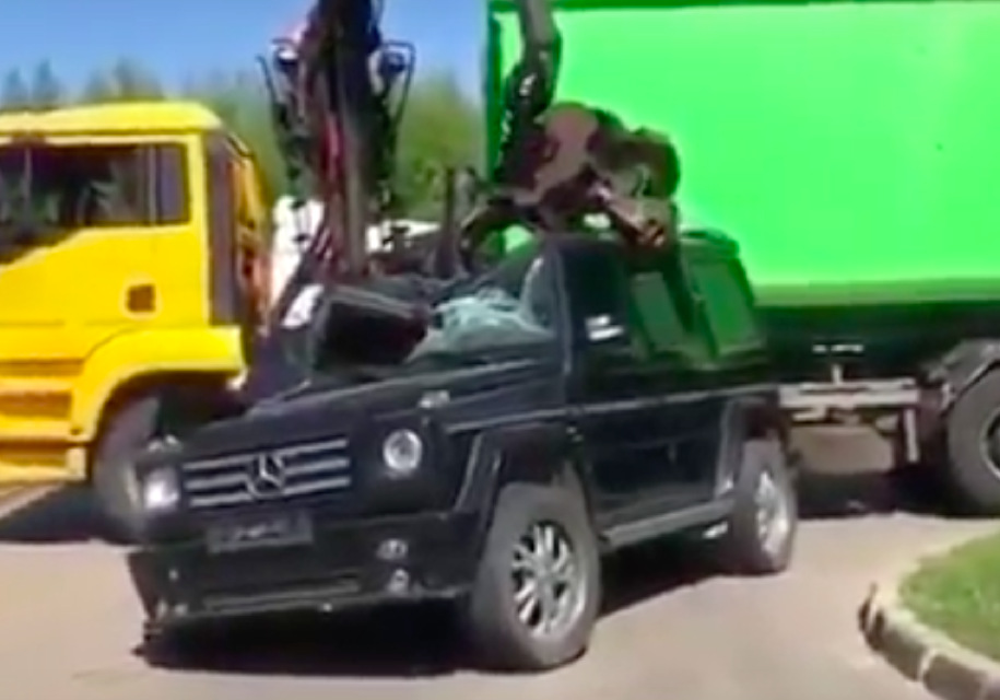 YouTube канал Mercedes-Benz Europe опубликовал видеоролик, в котором грузовик с манипулятором уничтожает Mercedes-Benz G-класса. Ролик не снабжен никаким описанием, поэтому нам остается лишь гадать о причинах происходящего.