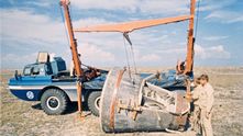 Вы увидите процессы погрузки и разгрузки не только спускаемых космических аппаратов «Союз», но и со спутниками фоторазведки. Но и это не всё. В видеоролике можно увидеть шнекороторный вездеход ПЭМ-3 в движении, а также спасение космических аппаратов не только на суше, но и на воде.