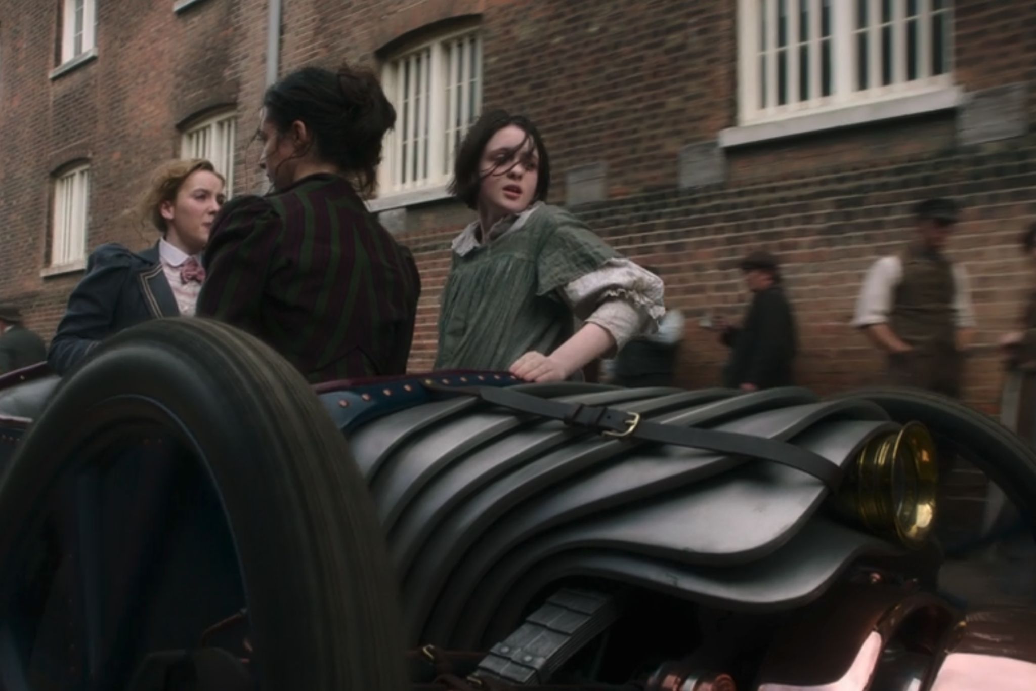 Наши главные героини — Амалия Тру (Лаура Доннелли) и Пенанс Адэр (Энн Скелли) — две женщины, которых «коснулись». Это означает, что у них есть особые способности, примерно как у Людей Икс. Пенанс Адэр — изобретатель. Первое из её изобретений, которой мы видим — это гужевая повозка, управляемая роботом. То есть вполне себе автономный автомобиль во вселенной стимпанка.
