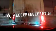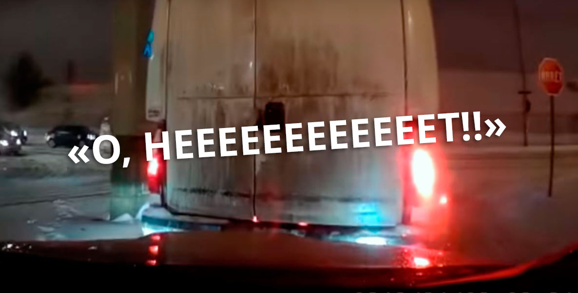 Сама авария не является самой интересной частью видеороика, ведь столкновение произошло на минимальной скорости. А вот реакция водителя, который находится в нескольких мгновениях от столкновения — действительно бесценна.