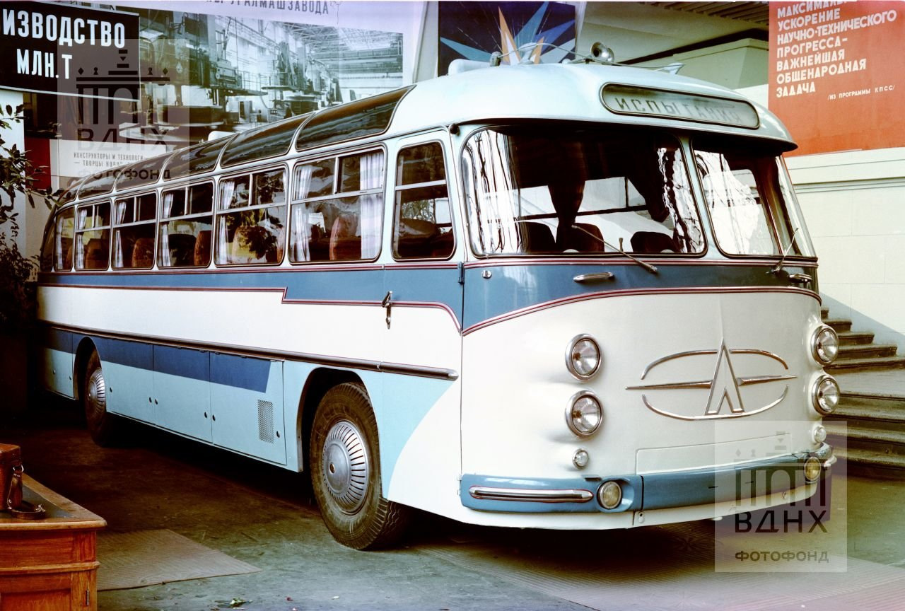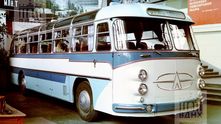 Одним из самых красивых экспонатов можно считать прототип междугороднего автобуса ЛАЗ-699А "Карпаты", сделанный в 1960 году. Пассажиры восседали на 41 регулируемых креслах с вмонтированными в подголовники динамики аудиосистемы. Кстати, это прототип второй серии, который отличался оформлением передней части с четырьмя попарно установленными фарами.