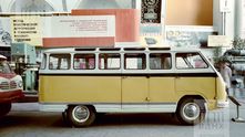 Ну и, конечно же, самый красивый микроавтобус того времени — РАФ-977 "Латвия" образца 1959 года. Он создан на основе узлов и агрегатов легкового автомобиля ГАЗ-21 "Волга". В 1958 году было сделано 10 предсерийных экземпляров, а полномасштабное производство стартовало в 1959 году. В 1961 году в производство пошла модернизированная модель с измененным кузовом, который отличался, в первую очередь, более широкой боковой пассажирской дверью.