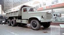 Еще один самосвал — КрАЗ-222 "Днепр" образца 1959 года. Был создан на базе бортового грузовика КрАЗ-219. В таком виде самосвал будут выпускать совсем недолго: в 1966 году ему на смену придет более привычная нам модель КрАЗ-256Б. Под капотом "Днепра" (его можно отличить по оригинальной передней защитной решетке) находился двухтактный дизельный двигатель ЯАЗ-206 мощностью 180 л.с.