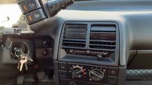 Передняя панель не отличается от обычного ВАЗ-2110, разве что рулевое колесо тут оригинальное — четырехспицевое с деревянной отделкой. Правда я не уверен, что так было изначально: возможно это «тюнинг» от владельца.