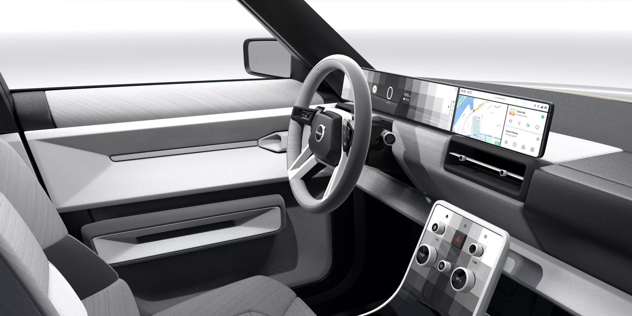 В интерьере дизайнер балансирует между ностальгией и инновациями. Вместо вертикального дисплея, характерного для современных Volvo, концепт получил горизонтальный дисплей на передней панели с минималистичными физическими элементами управления. Четырёхспицевый руль, тканевые сиденья в скандинавском стиле и высокотехнологичные материалы создают гармоничное сочетание ретро-атмосферы и современности.