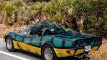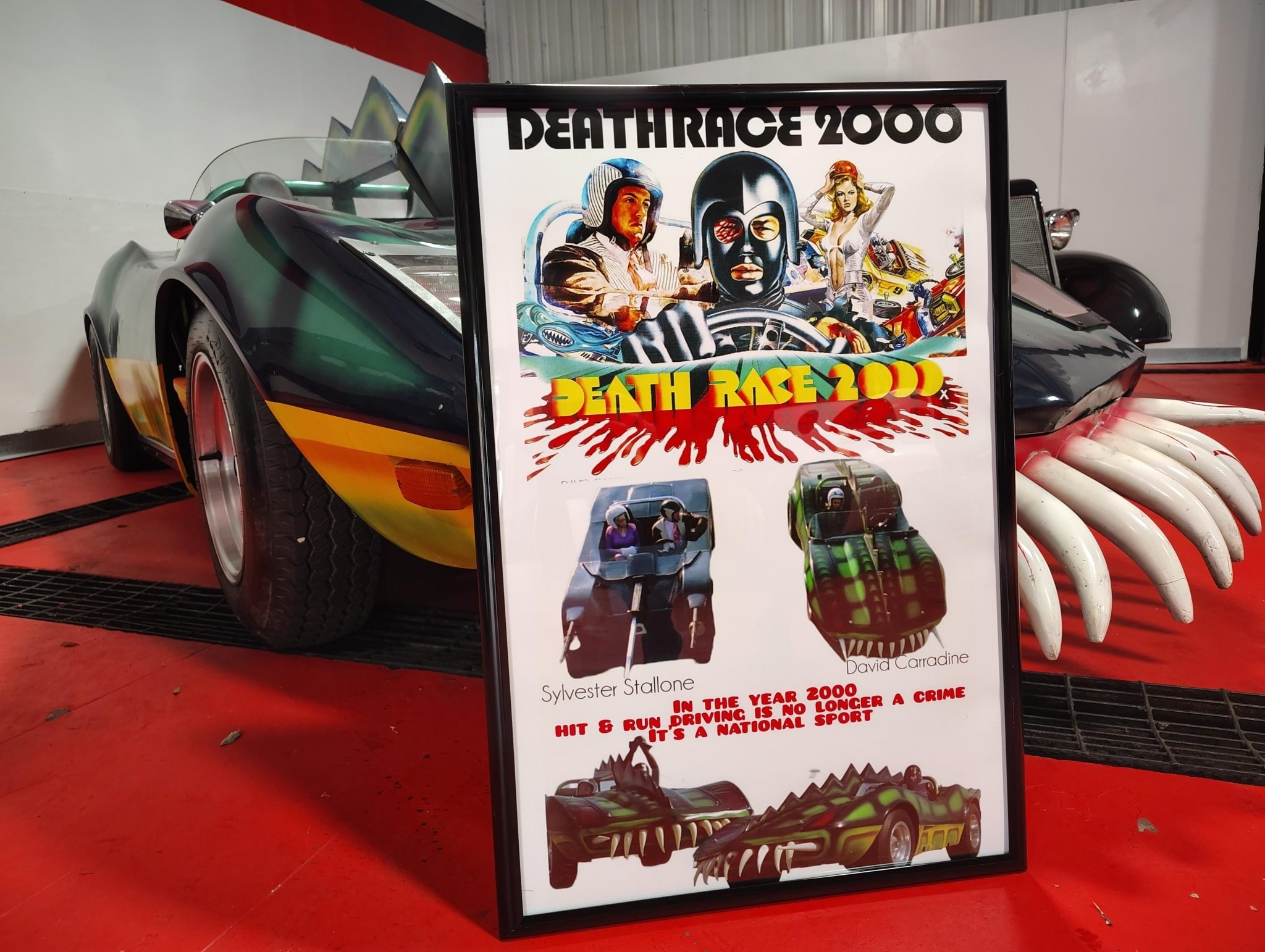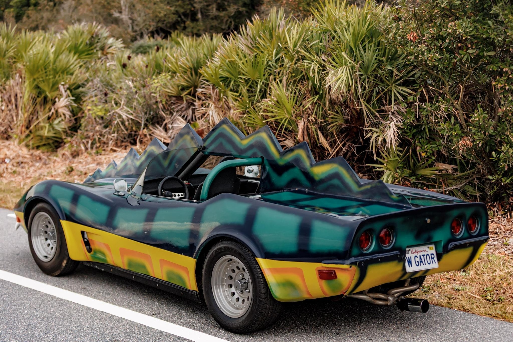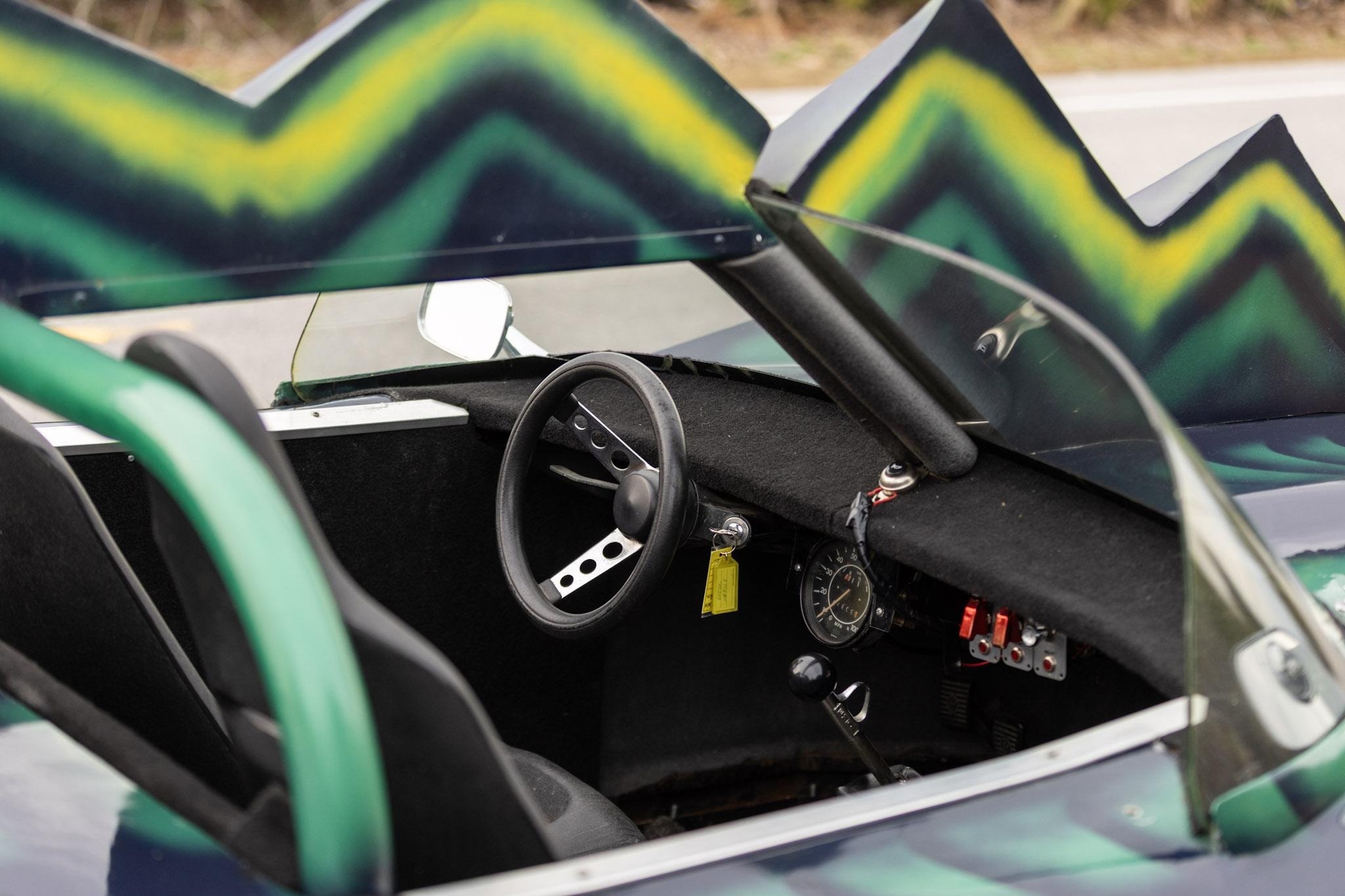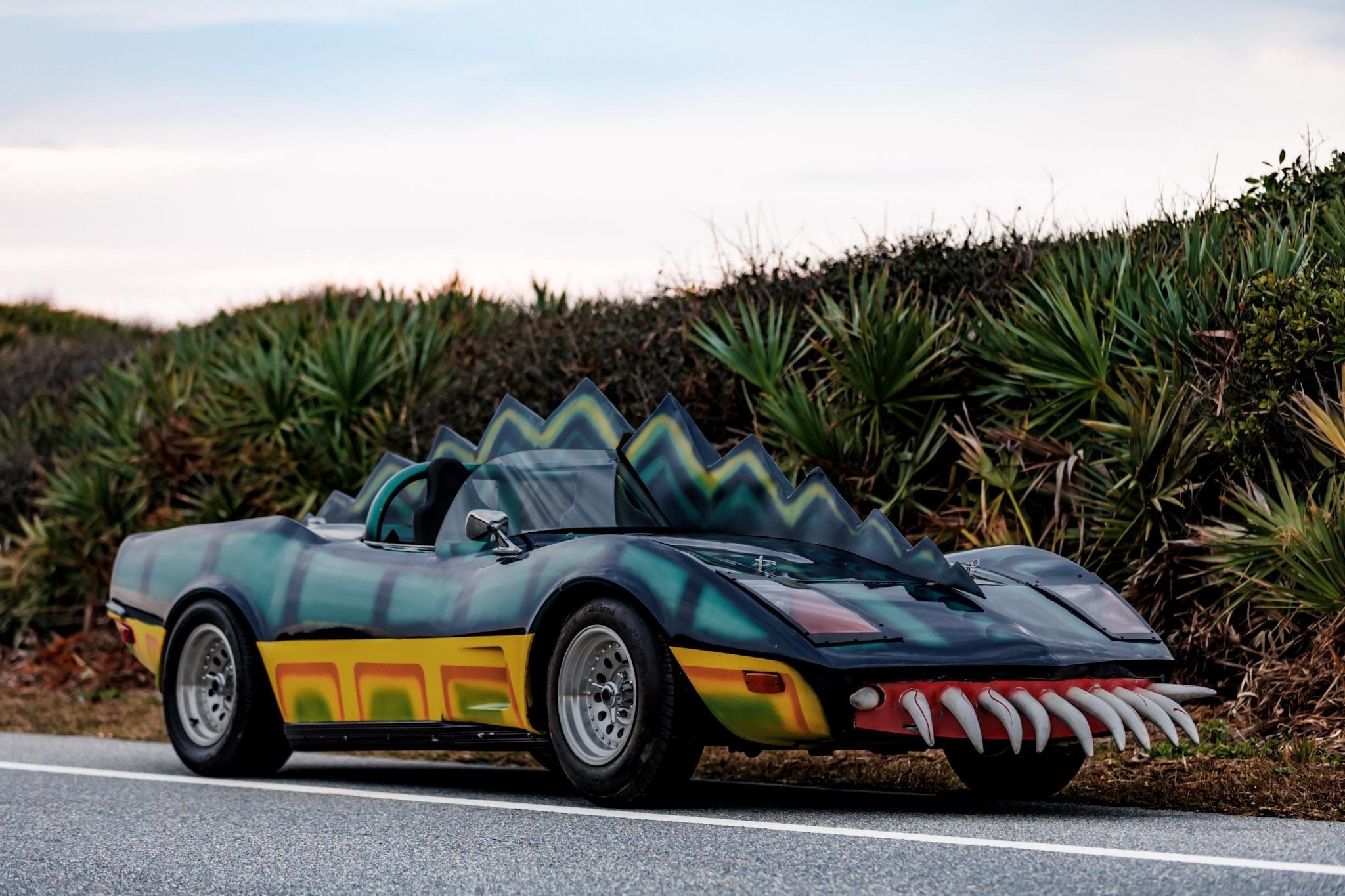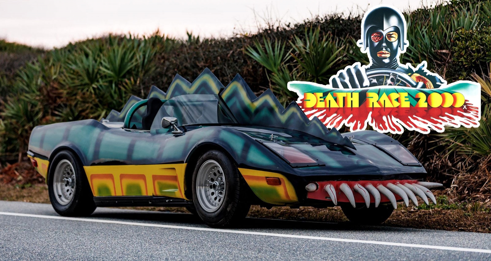Этот родстер с кузовом из стеклопластика — реплика автомобиля «Monster» из фильма «Смертельная Гонка 2000» (Death Race 2000) 1975 года.