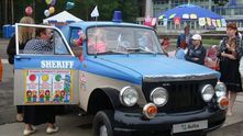 Не уверены, что у него хорошо получилось. Но без внимания этот автомобиль точно не останется. Посмотрите на фотографию ниже с какого-то городского праздника. Детишки буквально облепили необычный автомобиль, имитирующий полицейскую машину шерифа.