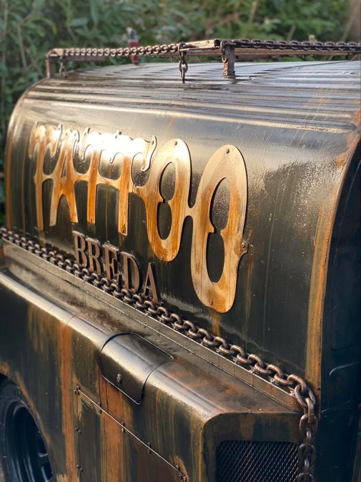 Дизайн: 2CV с кузовом фургон был стилизован под рэтрод. Но вместо настоящей ржавчины на кузове используется особая покраска под ржавчину с подтёками коричневого цвета.