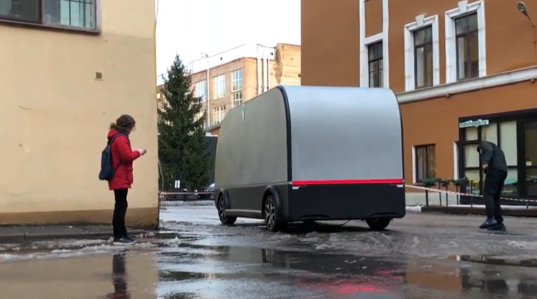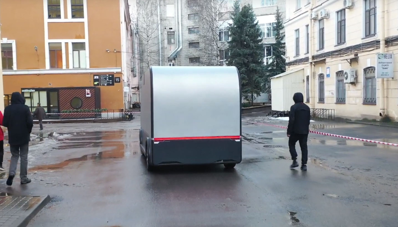 Оказывается, российские разработчики также работают в подобном направлении. Компания Ralient из Санкт-Петербурга показала свой вариант 2-тонного автономного электрического грузовика, первые испытания которого прошли на закрытой территории какого-то учреждения.