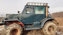 Вездеход имеет полный привод (о чём гордо сообщает надпись «4х4» на решетке радиатора) и огромные колеса от комбайна «Ярославец». Сзади установлена полноценная навеска от трактора МТЗ, что позволяет его использовать для выполнения различных работ по обработке почвы, можно поставить плуг, фрезу и пр.