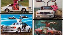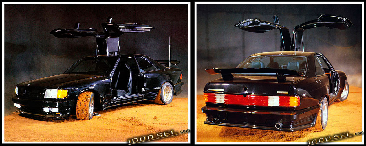 Продолжим тему дверей «крылья чайки». Если вдруг версия ателье Styling Garage казалась вам слишком обыденной, всегда можно было обратиться в ателье Sbarro, чтобы сделать что-то действительно безумное. Например, этот W126 SEC, названный Shahin, был похож на автомобиль Безумного Макса, который поселился где-то на Майами Бич и балуется наркотиками.