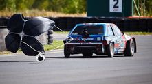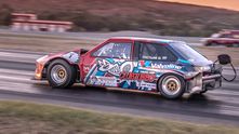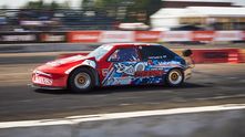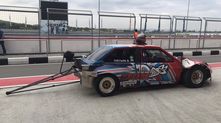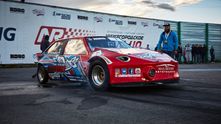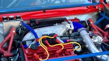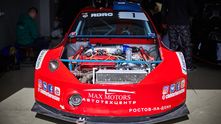 Дрэговая «восьмерка» построена на кастомной пространственной раме и оснащена серьезно доработанным двигателем от Mitsubishi Lancer Evolution, дополненным турбиной Garrett GTX 4202R. Потенциал этого мотора составляет около 1200 л.с., но настоящий сетап рассчитан на 1100 л.с. Коробка передач также от Lancer Evo с кулачковым рядом.