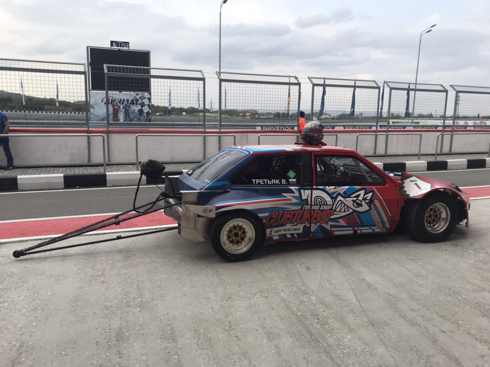 В 2018 году Владимир Третьяк на дрэгтазе установил личный рекорд – проехал 402 м за 9.3 сек на 2-ом этапе Чемпионата России по дрэг-рейсингу SMP RDRC в Грозном. Скорость на финише составила 250 км/ч. Просто фантастические показатели для ВАЗ-2108 конца 80-х. В этом, кстати, помогает маленький вес гоночного болида — всего 870 килограмммов. Кстати, по словам гонщика, до 200 км/ч необычная «восьмерка» разгоняется всего за 5,9 секунды.