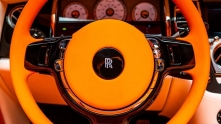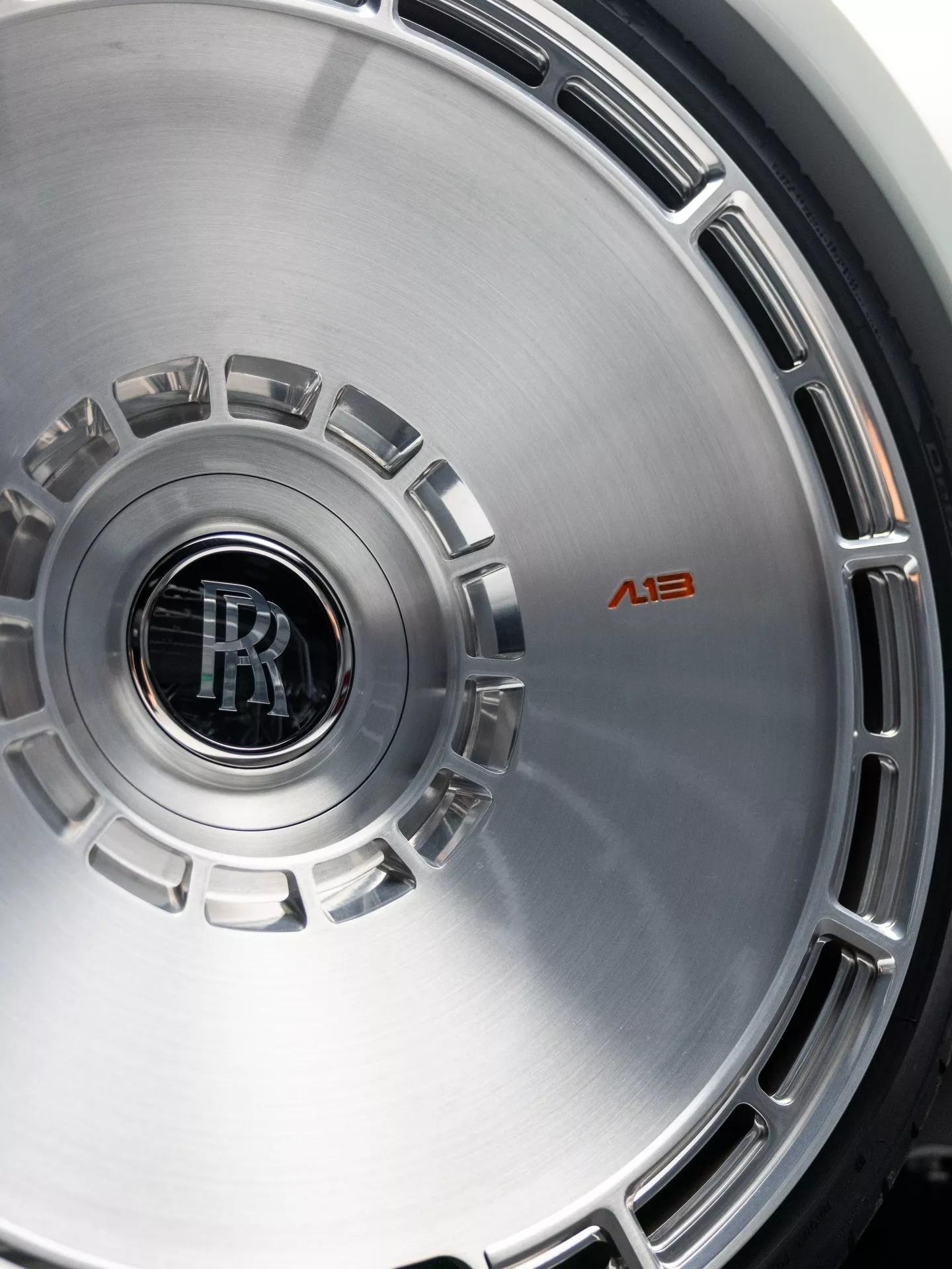 К этому добавились округлые дополнительные фары, выпирающие из бампера, частично прикрытая штатная оптика и переосмысленная фигурка Spirit of Ecstasy — теперь она белая, с оранжевым логотипом Rolls-Royce.