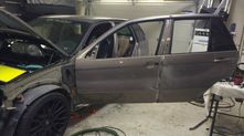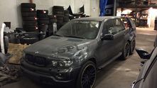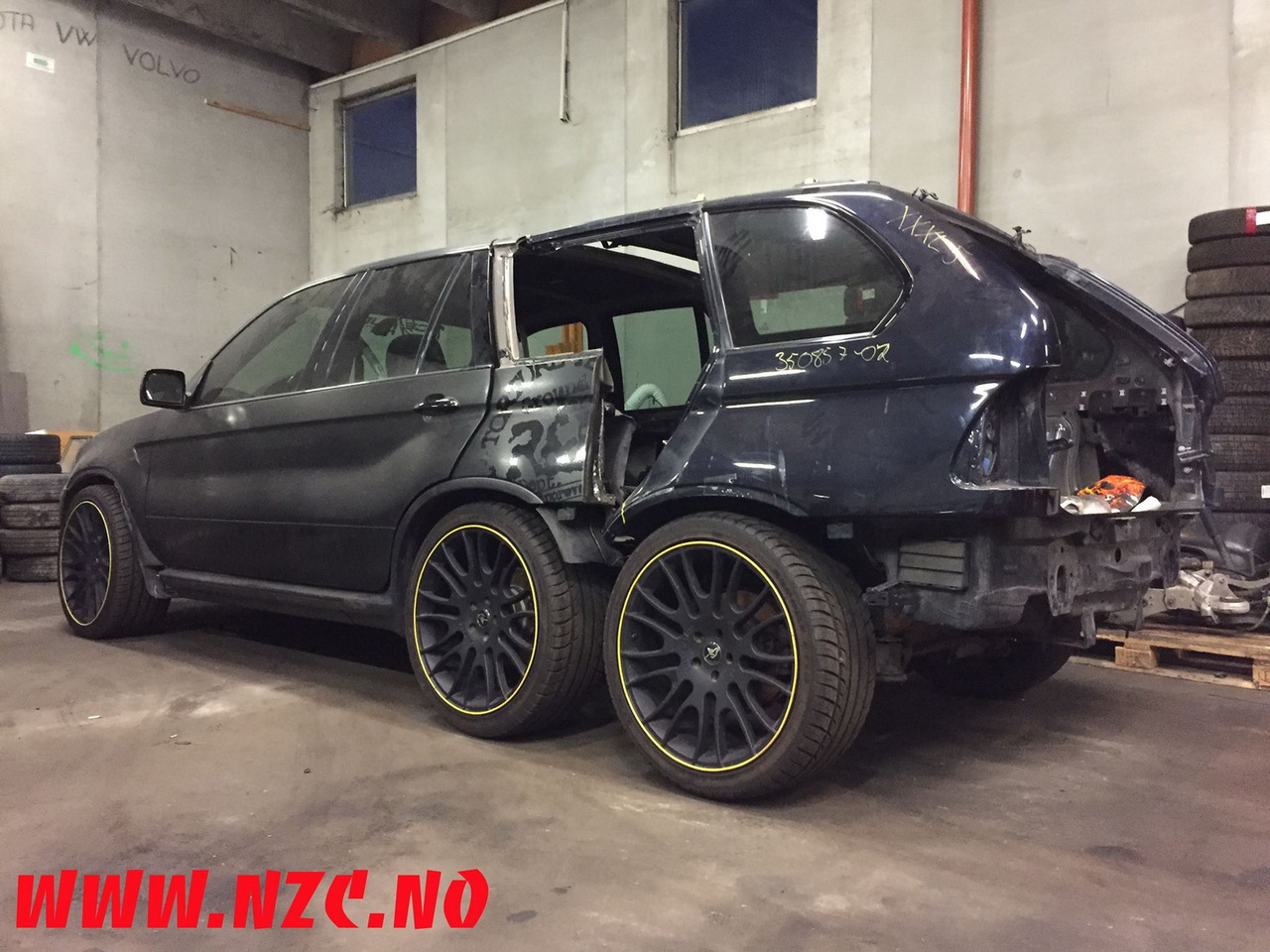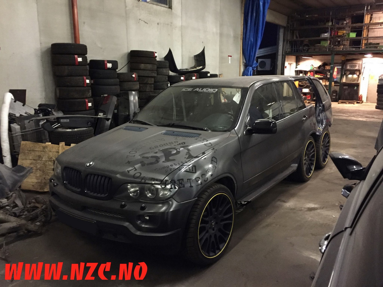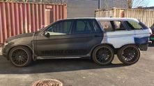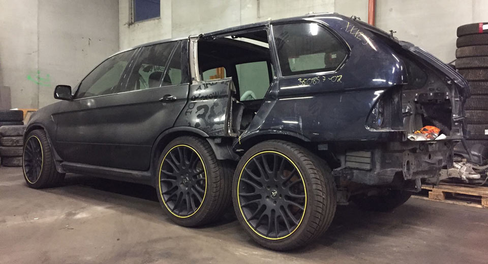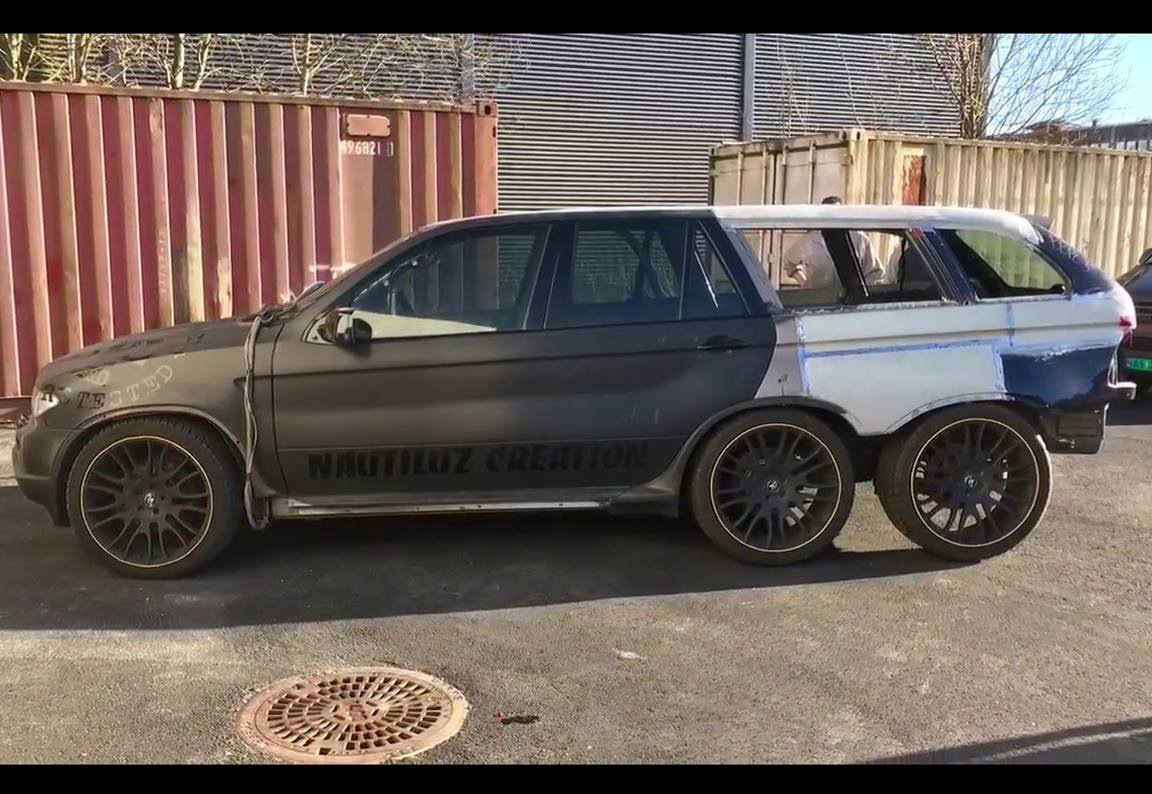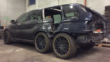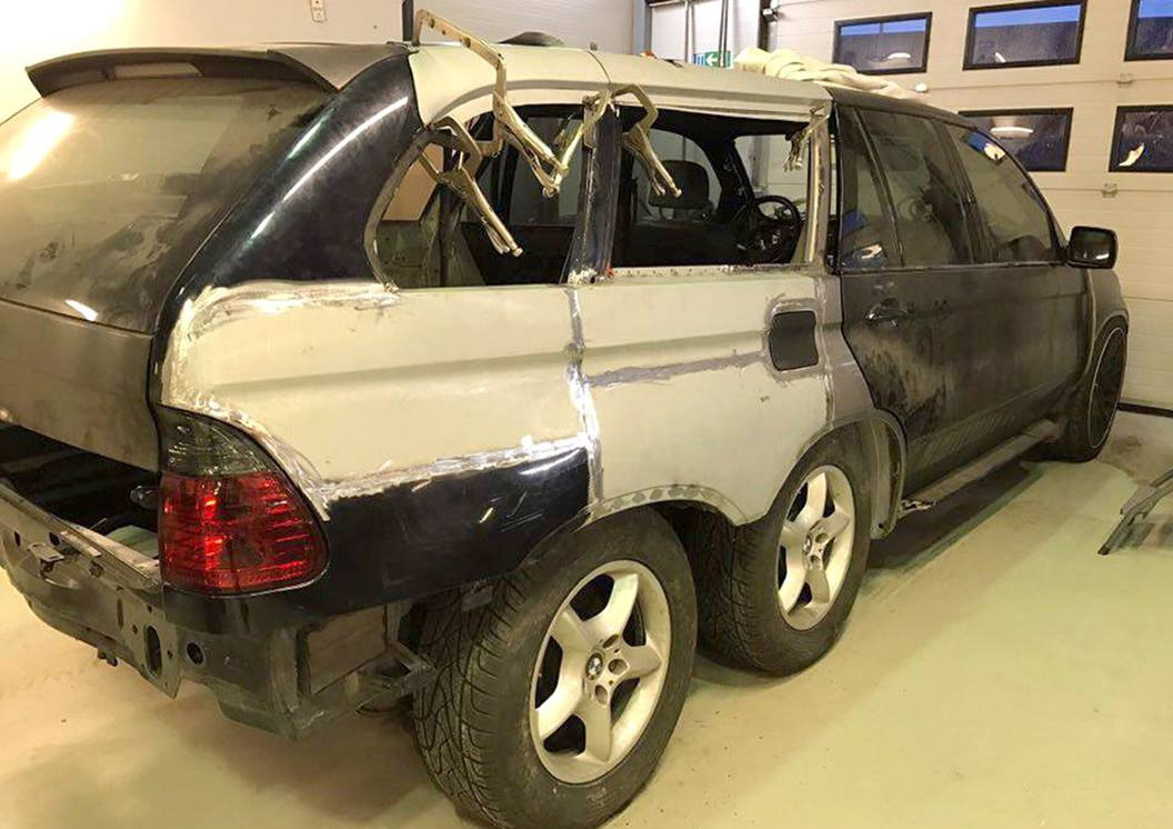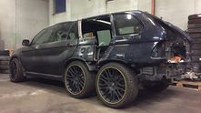 Но это еще не все. Внедорожнику добавили еще одну заднюю часть с собственной осью от BMW X5 того же поколения E53, которая была тщательно приварена. Получился трехосный двухдверный "франкенштейн".