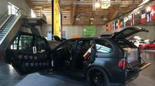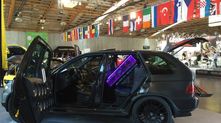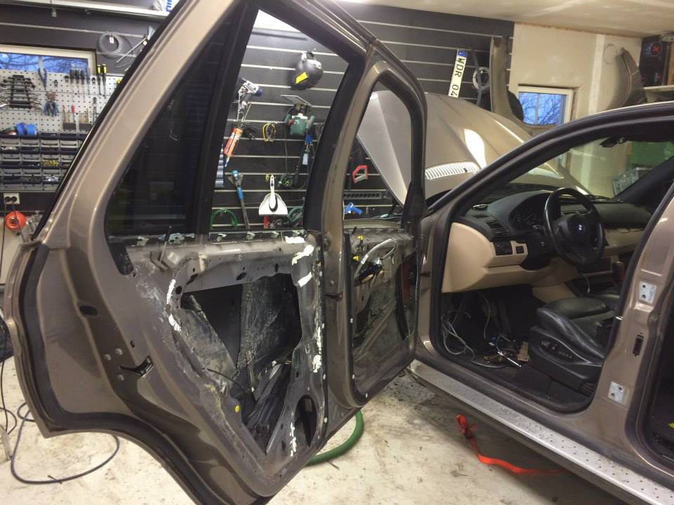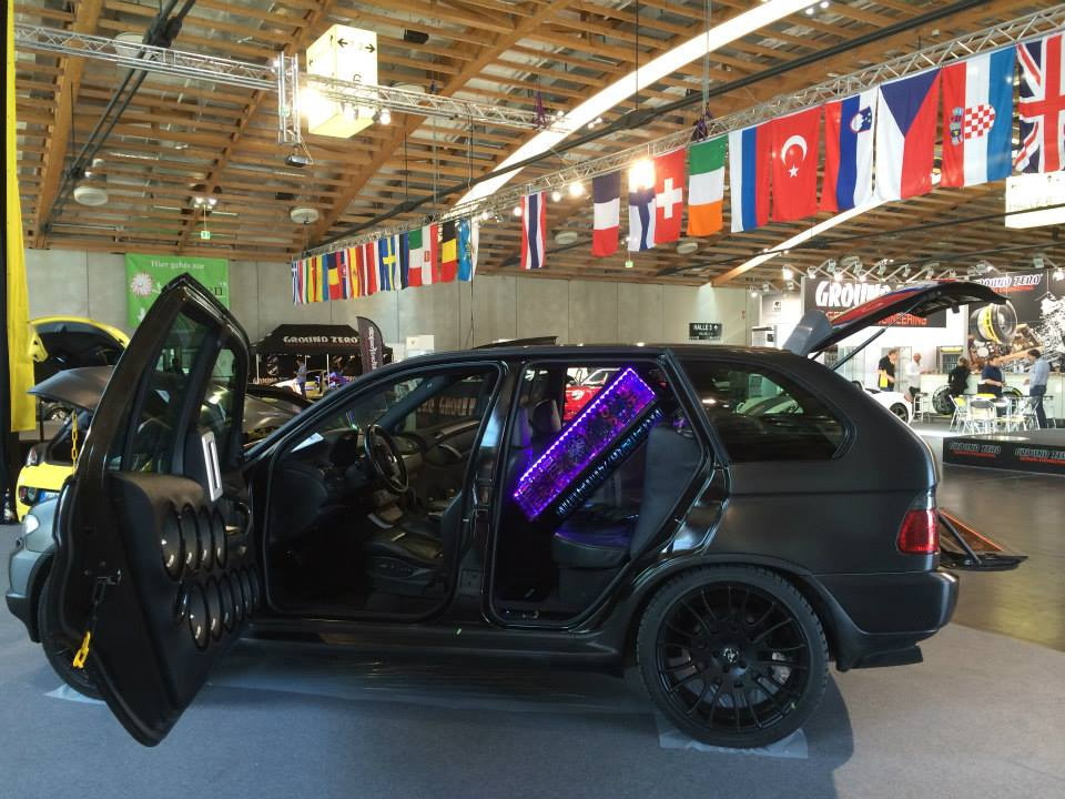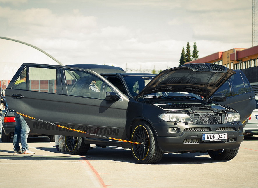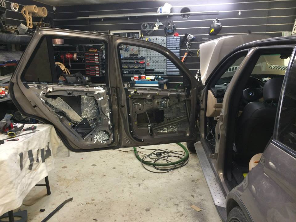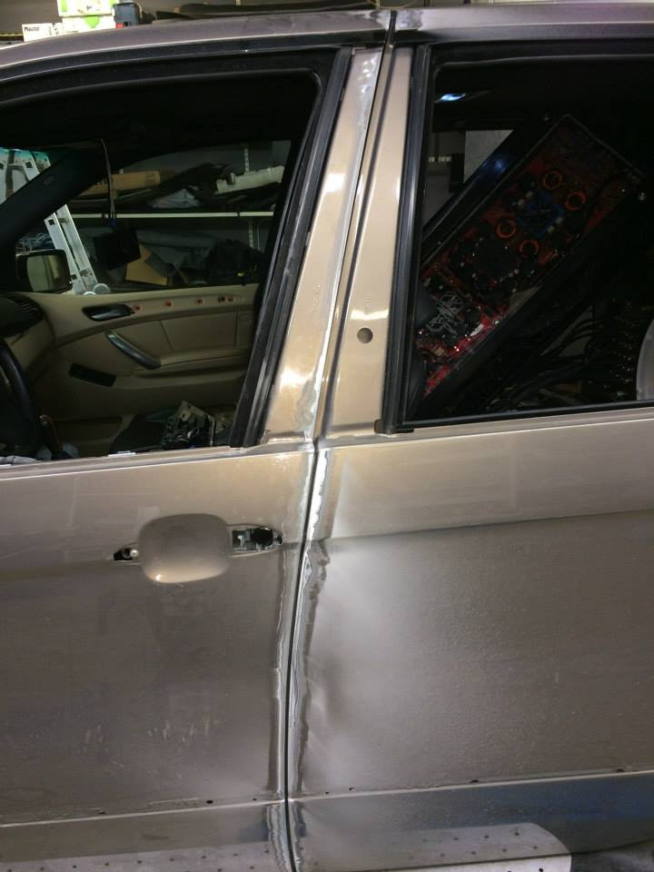 Их проект BMW X5, вероятно, заставит вас поднять брови в недоумении, потому что после того, как автомобиль был оснащен большим количеством динамиков, усилителей и сабвуферов, у него были соединены передние и задние двери в единое целое.