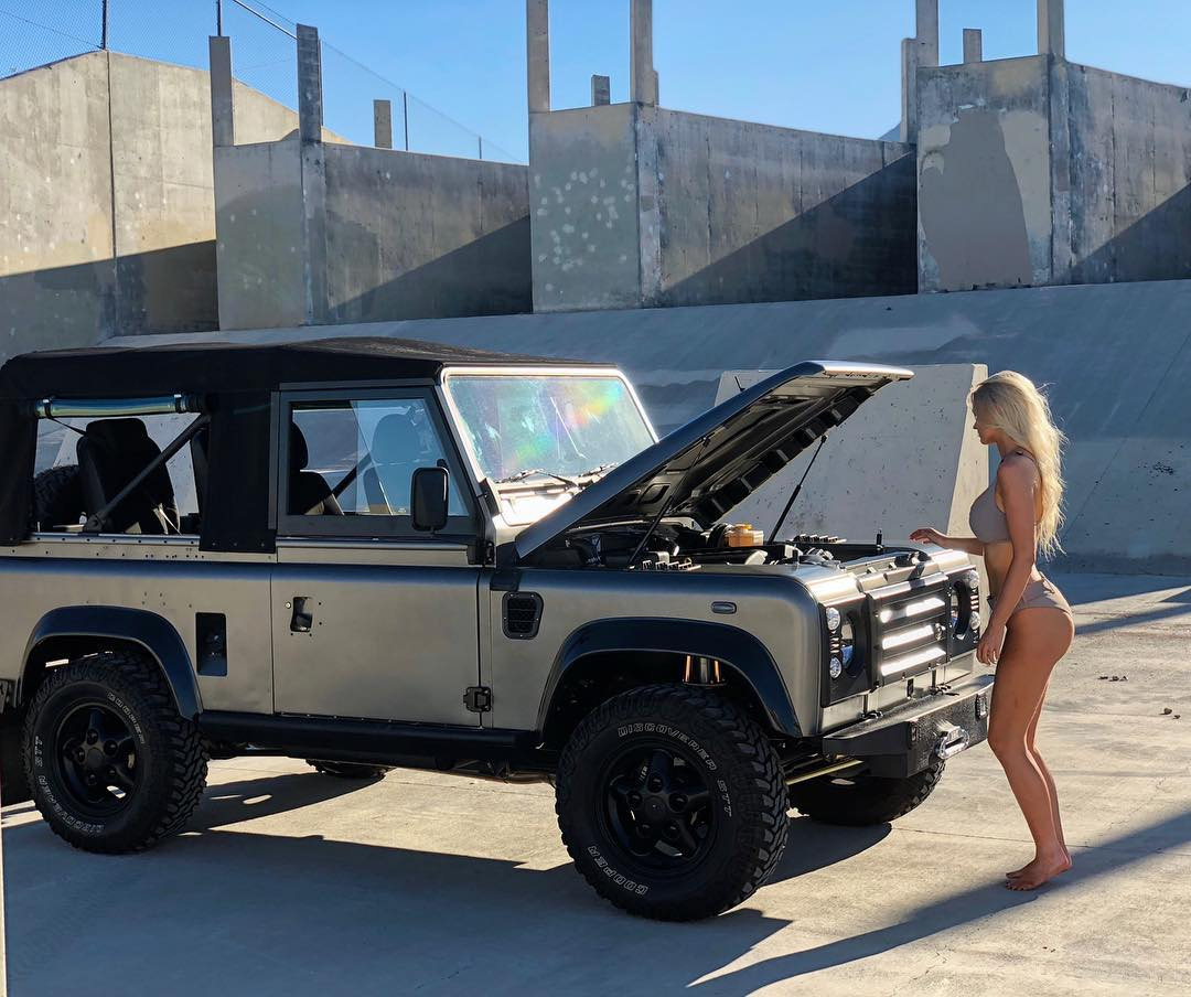 Нам не пришлось долго искать повод, чтобы написать о ней, ведь модель является поклонником Land Rover Defender, а в её Инстаграмме кроме фотографий в самых разных купальниках есть также серия снимков с легендарными внедорожниками. Хочется отметить, что она просто шикарна за рулем Defender. Давайте, насладимся этой красотой!