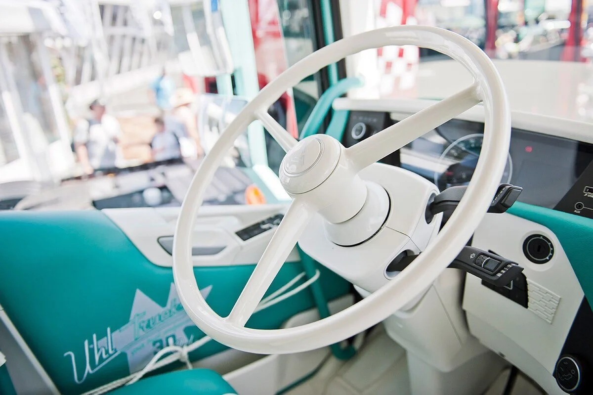В Европе очень популярно заменять стандартное рулевое колесо на подобные олдскульные модели. Оно намного больше в диаметре и напоминает рули грузовиков 40-50-х годов.