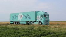 Трехосный тягач Volvo FH540 6x2 и полуприцеп рефрижератор получили эффектный внешний образ, благодаря которому автопоезд не останется незамеченным на дороге.