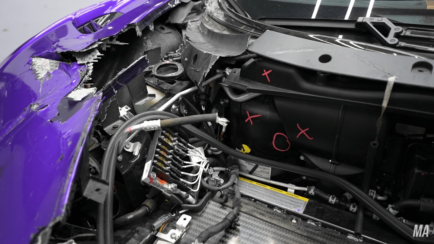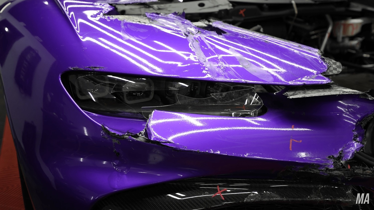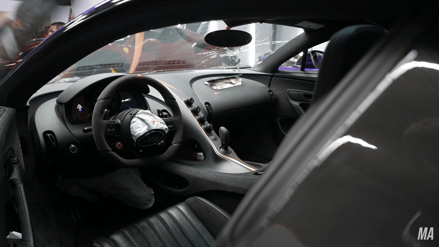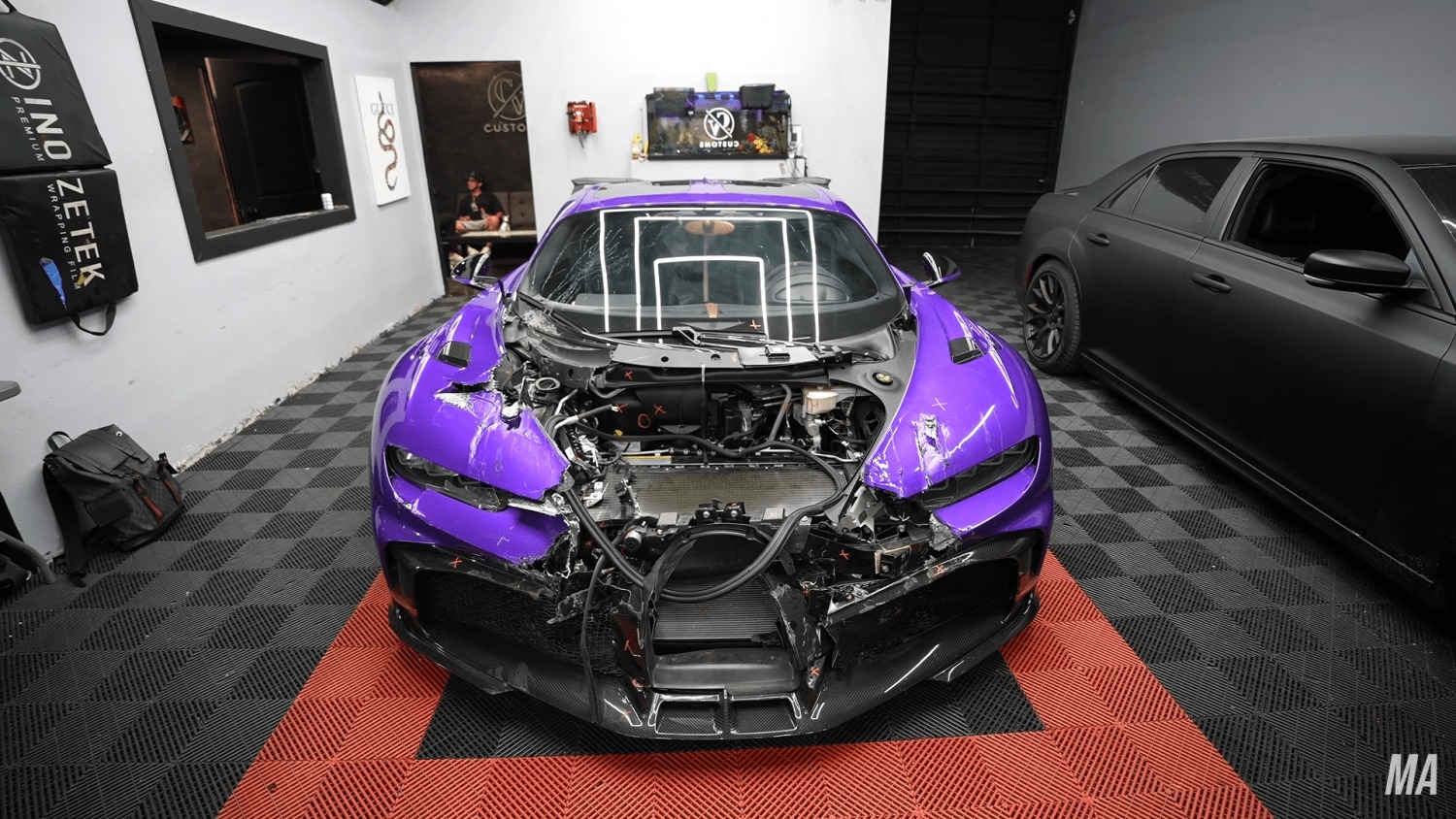 Сама авария на низкой скорости привела к повреждению переднего бампера, решётки радиатора, фар, капота и крыльев — по обычным меркам это не катастрофа. Но у Bugatti всё не как у остальных.