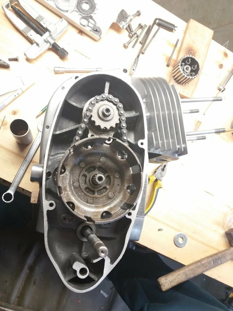 Новый хозяин сразу же начал процесс комплексной реставрации. Мотоцикл был разобран до рамы, все детали прошли дефектовку, чистку от грязи и ремонт, если он был необходим.