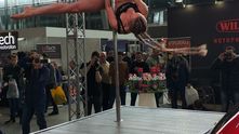 То, что с первого раза можно было принять за жесткий верх грузовой платформы пикапа — оказалось импровизированным подъемным танцполом с центральным креплением для основного элемента танцев — шеста.