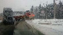 Когда стало понятно, что столкновение неизбежно, он включил заднюю передачу и виртуозно вырулил на встречную полосу. Всё это происходит словно в замедленной съемке под вопли его пассажирки. Еще бы, отлетевший после удара с поездом грузовик был буквально в паре метров от автомобиля автора видеоролика. К счастью, в происшествии никто не пострадал. Кроме техники, конечно.