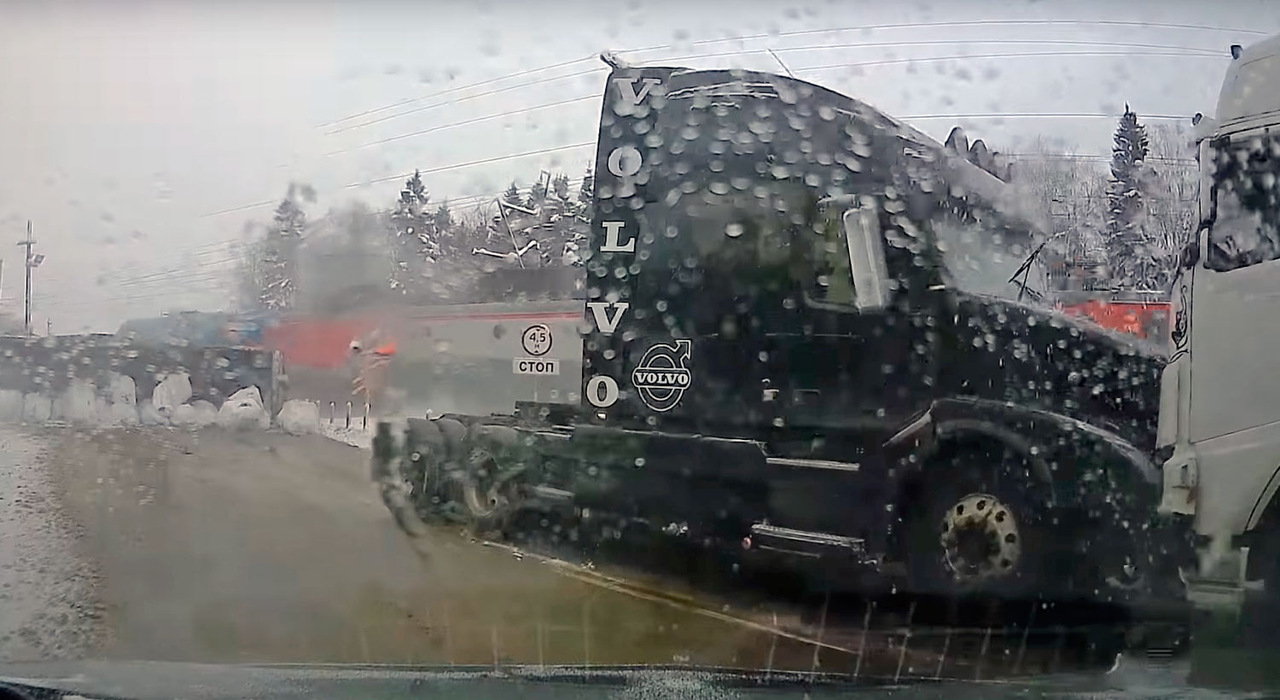Подобные происшествия происходят по всему миру с регулярной периодичностью. И мы бы даже не стали про это писать, если бы не эффектное спасение автора видеоролика, которого, судя по всему, зовут Михаил. До последнего момента он наблюдал за ситуацией, стоя в десяти метрах от застрявшего грузовика.