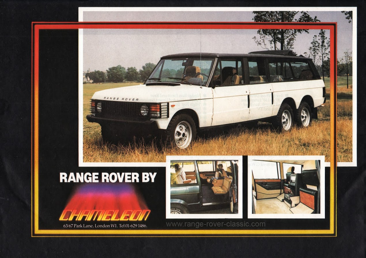 Но и это не всё. Английское ателье также занималось доработкой внедорожников Range Rover. Это были 4- или 6-колесные модификации (последние с колесной формулой 6х4 или 6х6). Дополнительное оборудование включало люк на всю длину крыши, видео и TV-систему, бар, сиденья с гидравлическим (!) приводом, велюр или кожа на выбор. Некоторые версии оснастили прямоугольными фарами.
