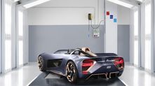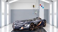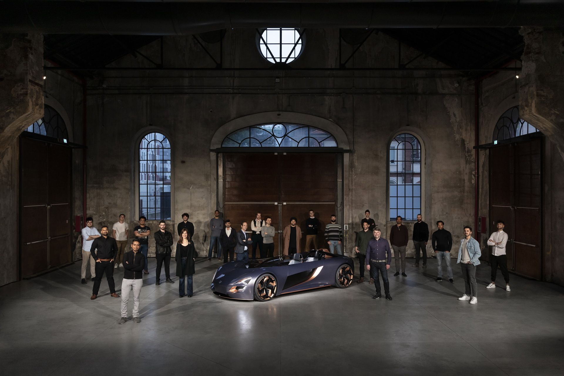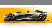 Спереди спидстер выделяется оригинальными фарами в форме стрелок, которые объединены с воздухозаборниками. Подобное дизайнерское решение повторяется в задней части автомобиля. Единственная дверь по левому борту оснащена стеклянной панелью, позволяющей водителю и пассажиру чувствовать себя еще ближе к дороге.