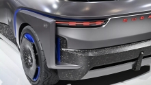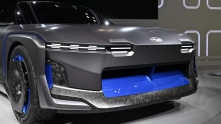 Хотя дизайн передней части получился на любителя, тёмная крыша в сочетании с чёрными стойками и тонированными стёклами создаёт ощущение цельного колпака. Внимание также привлекают большие колёса, контурные крылья и карбоновые элементы с необычной текстурой по нижнему периметру.