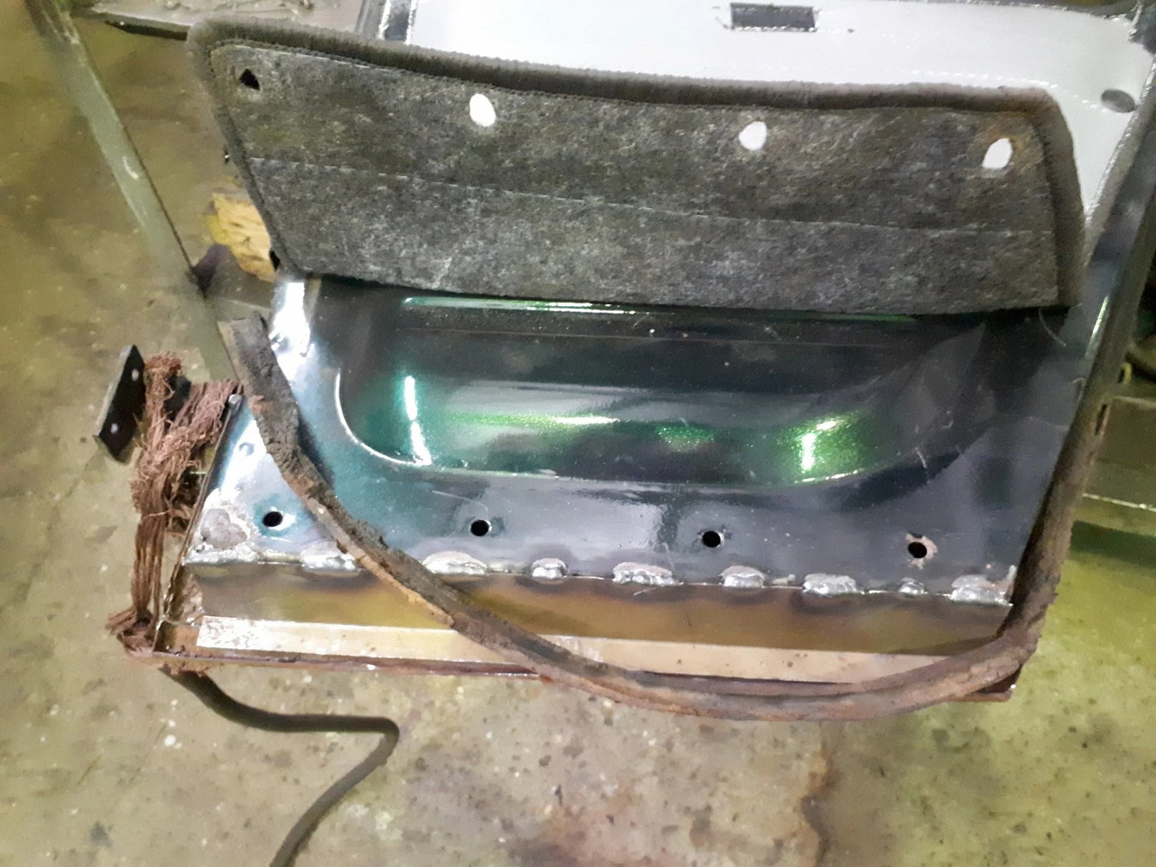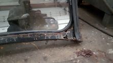 Было решено срезать всю ржавчину и переваривать детали. Срезали колесные арки, их место займут пластиковые расширители. Пришлось помучиться с задней правой дверью: её нижняя часть была в ужасном состоянии. Фактически, нижний торец пришлось изготавливать заново.