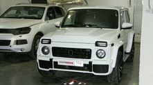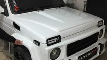 Первое, что бросается в глаза — это передний бампер, решетка радиатора и маска на фары, повторяющие внешность G63 AMG. Капот получил характерные выпуклости и смотрится просто потрясающе на угловатых формах «Нивы».