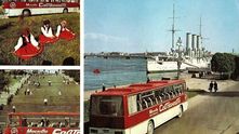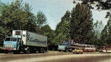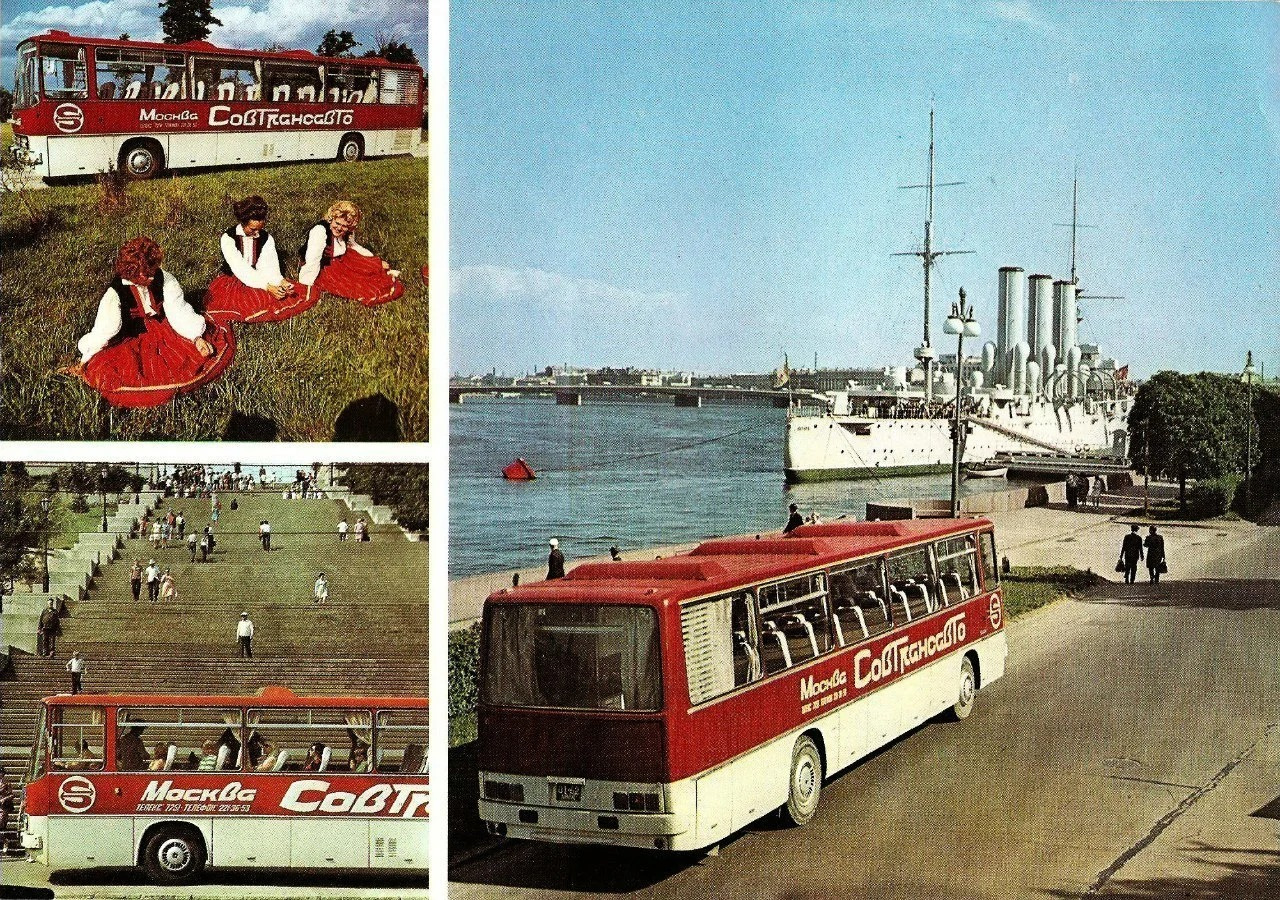 Следующие две фотографии - из рекламного проспекта СовТрансАвто - главного перевозчика Страны Советов. Мы видим тягачи МАЗ и автобусы Ikarus.