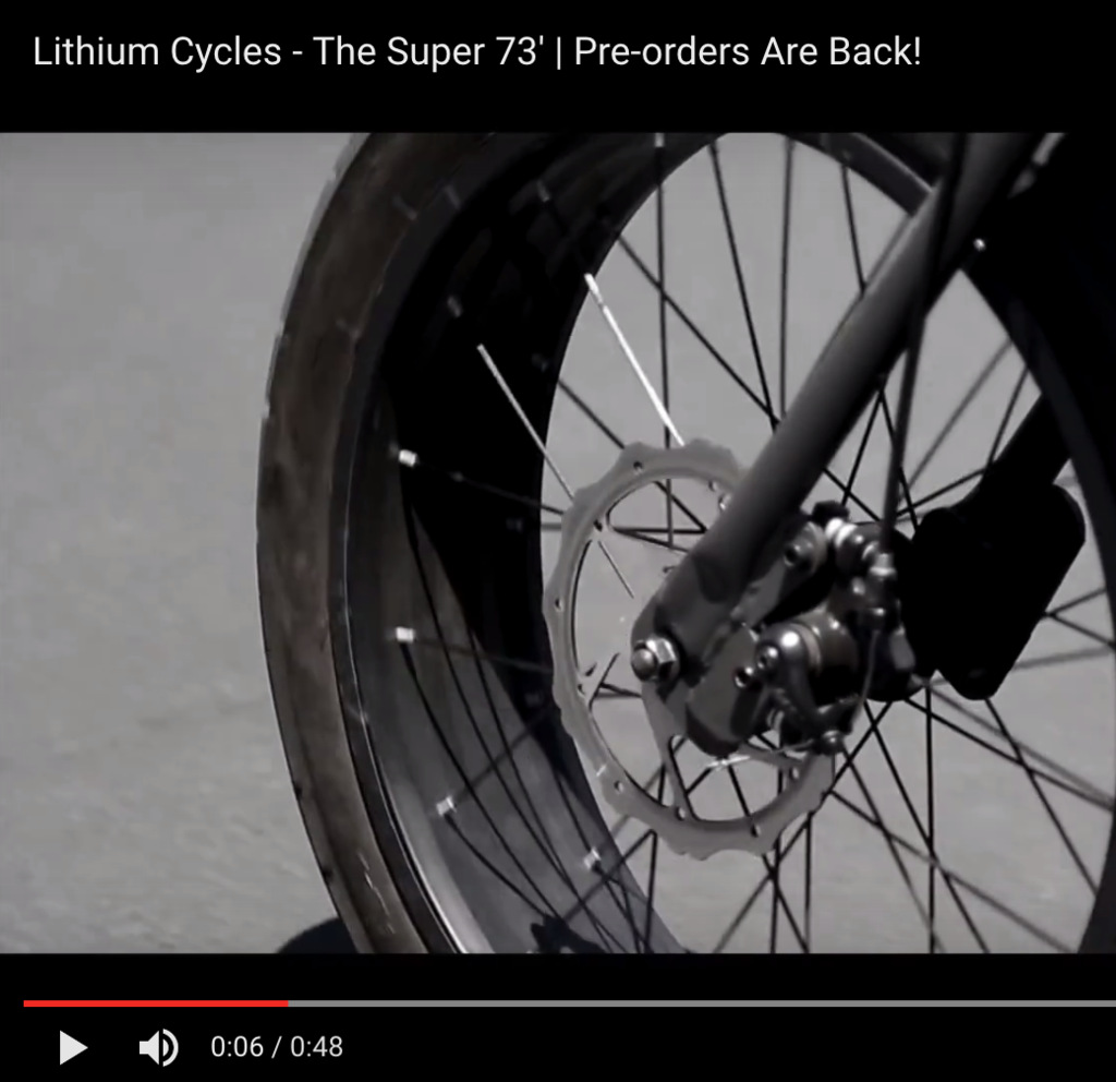 Официальное название этой модели - The Super 73 . Он был разработан и произведен Калифорнийской фирмой Lithium Cycles (www.lithiumcycles.com) - интернациональной бригадой из четырех креативных молодых людей.