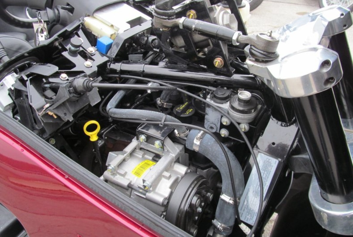 Новостные репортажи того времени лишь сообщали, что трайк приводился в движение 2,3-литровой «четверкой» Ford в паре с пятиступенчатым автоматом. Выходная мощность оценивалась в 145-152 л.с., а крутящий момент — 217 Ньютон-метров, в зависимости от источника информации.