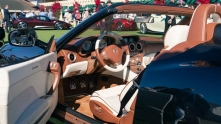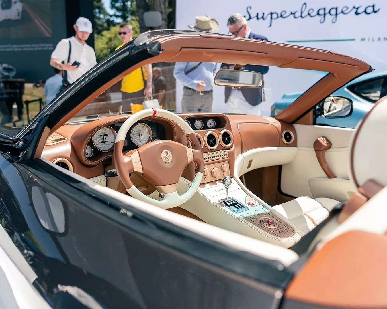 Салон представленного на Pebble Beach Concours d’Elegance экземпляра впечатляет двухцветной отделкой из коричневой и кремовой кожи, а также эксклюзивными переключателями и приборами — олицетворением ручной работы высшего уровня.