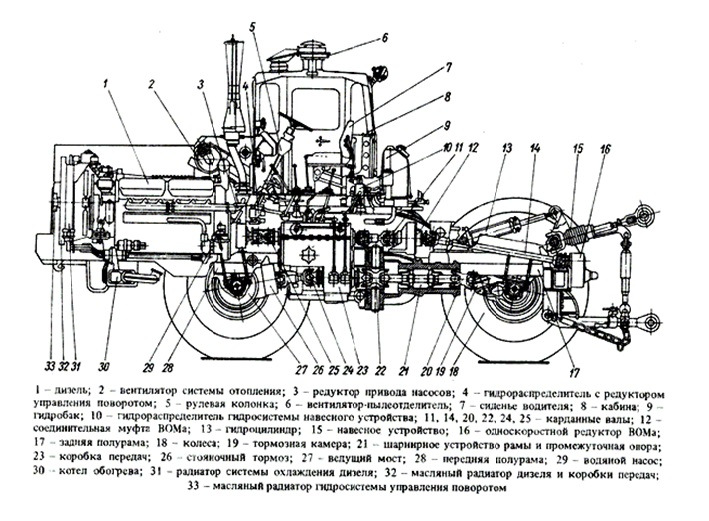 Таким образом, коробка передач с 16 скоростями при 4 диапазонах, 2 ведущих моста, механическая трансмиссия, гидравлическое управление переключениями внутри режимов обеспечивали эффективность технологических, рабочих и транспортных режимов. Гидравлическая система поворота и шарнирно-сочлененная рама оптимизировали компоновку, повысили маневренность и проходимость трактора. Новые тяговые качества (5 тонн на крюке) и скорость до 10 км/ч при пахоте в 2-3 раза увеличивали производительность труда на сельскохозяйственных и транспортных операциях и в 2 раза сокращали агротехнические сроки выполнения сельскохозяйственных работ.